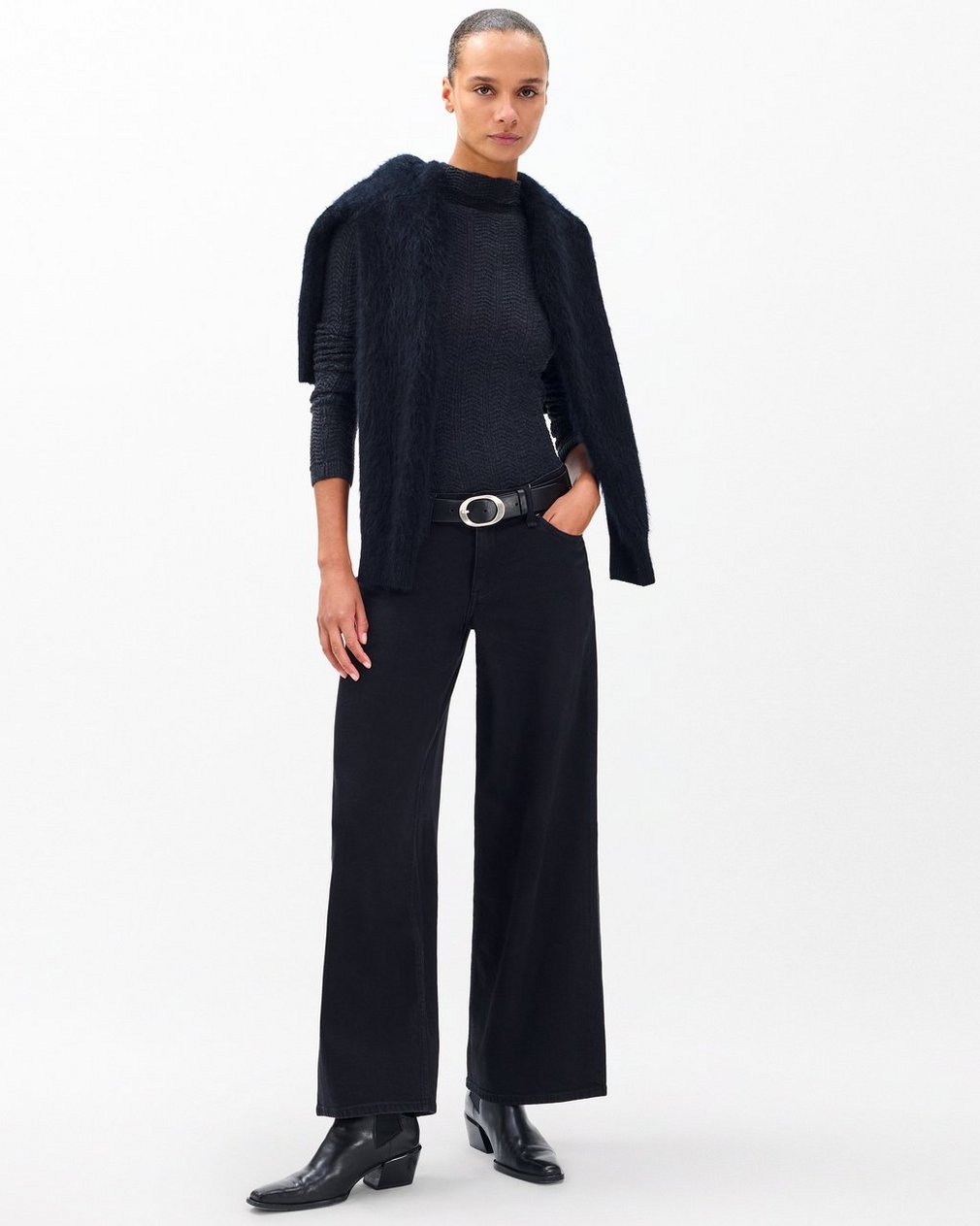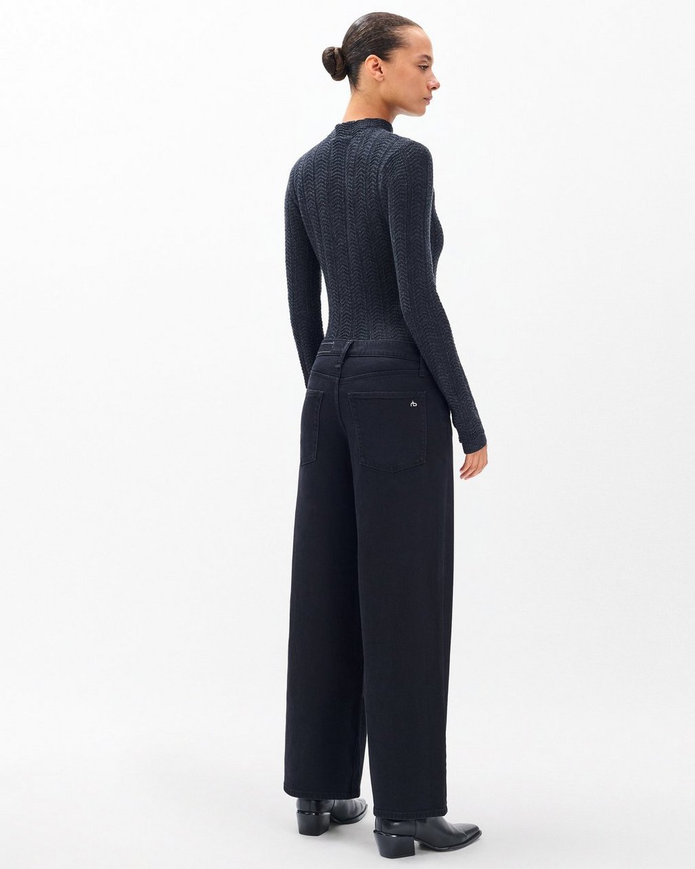 The Aiden. Low-rise, wide-leg jeans cut for a relaxed fit to fall around the ankle. Crafted from our Vintage Stretch denim for a broken-in look & feel with a comfortable touch of stretch. In Black.