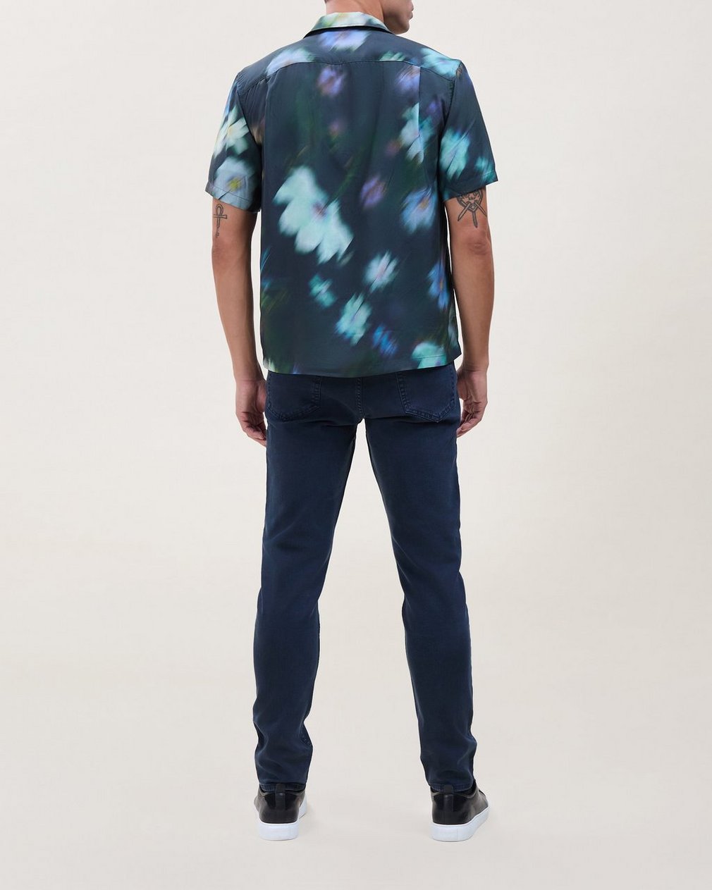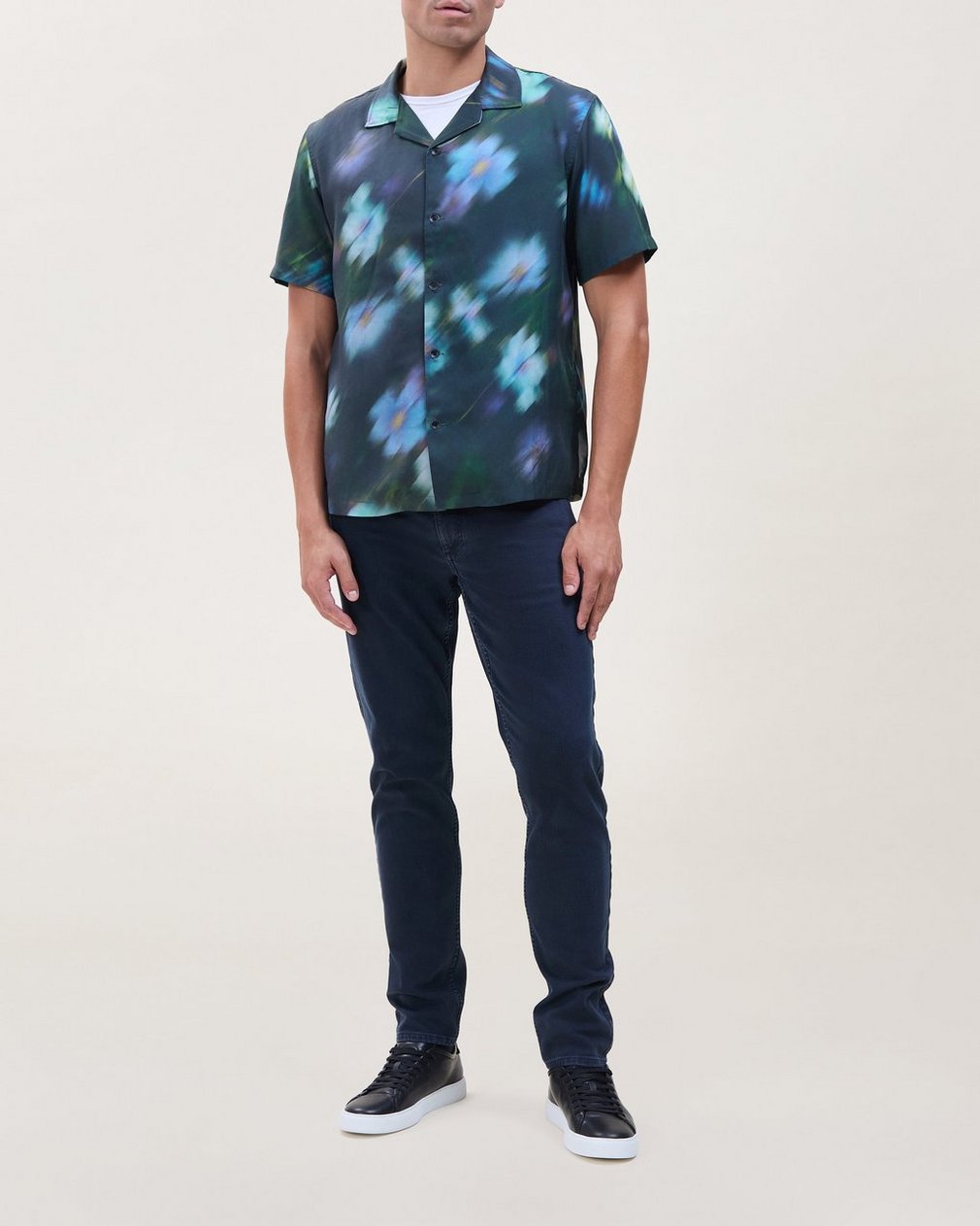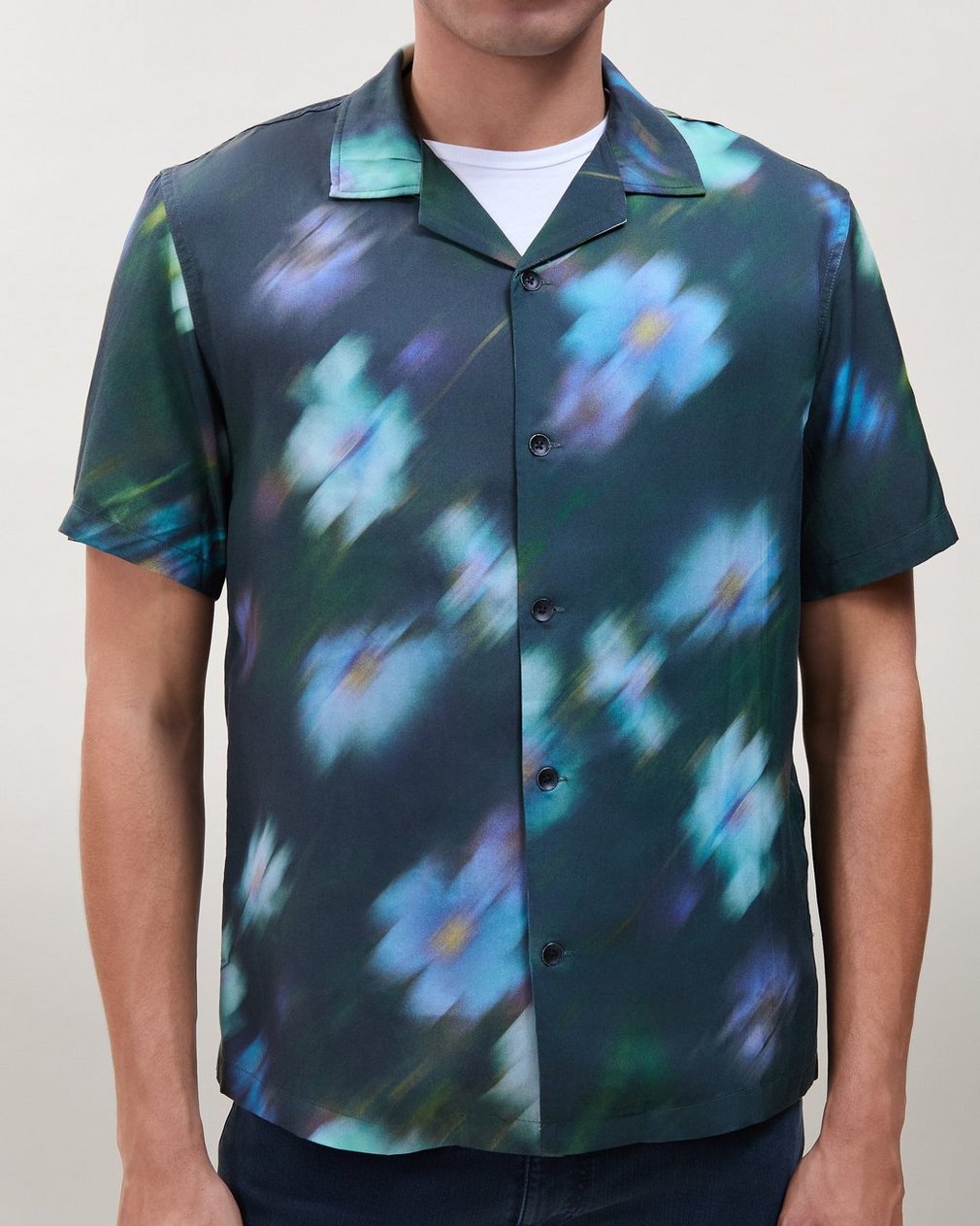 A nod to the Avery. A short-sleeve button-up shirt made from lightweight fabric with an excellent drape, updated in a bold floral print.