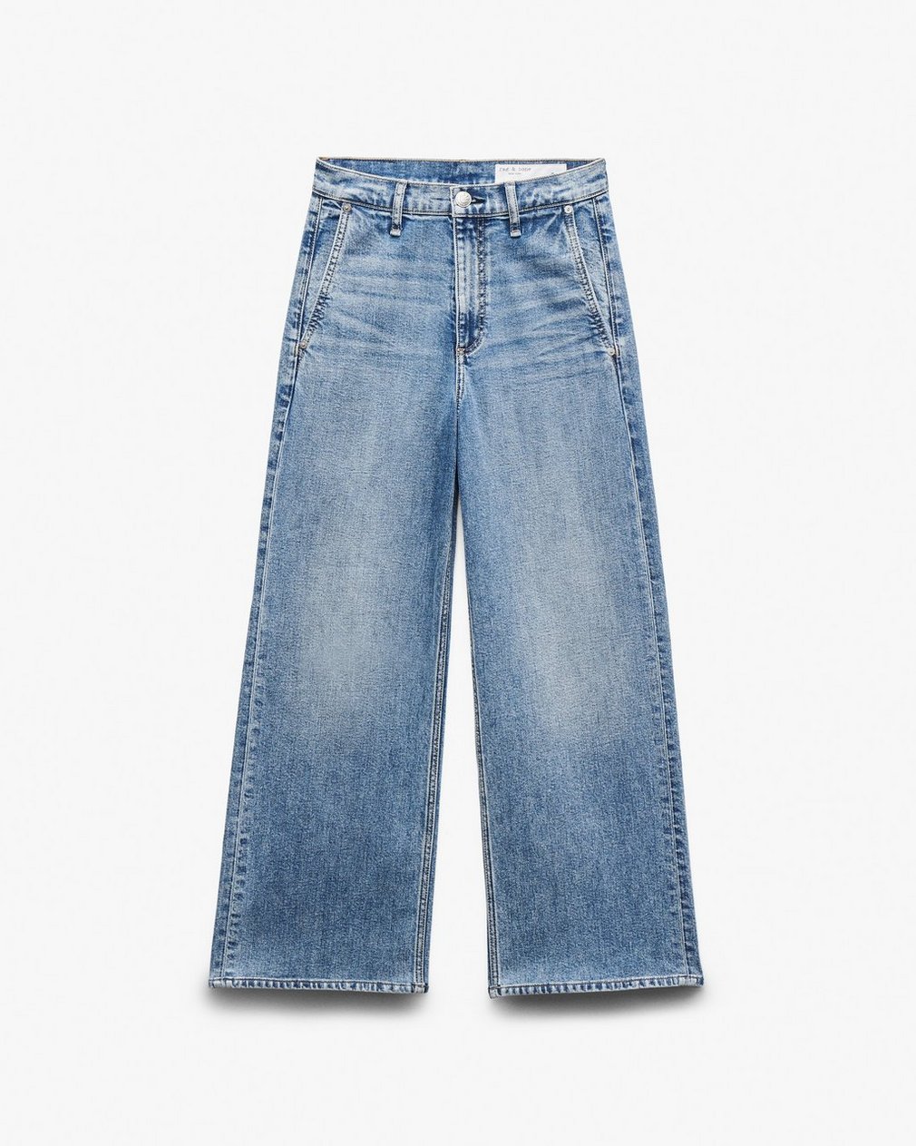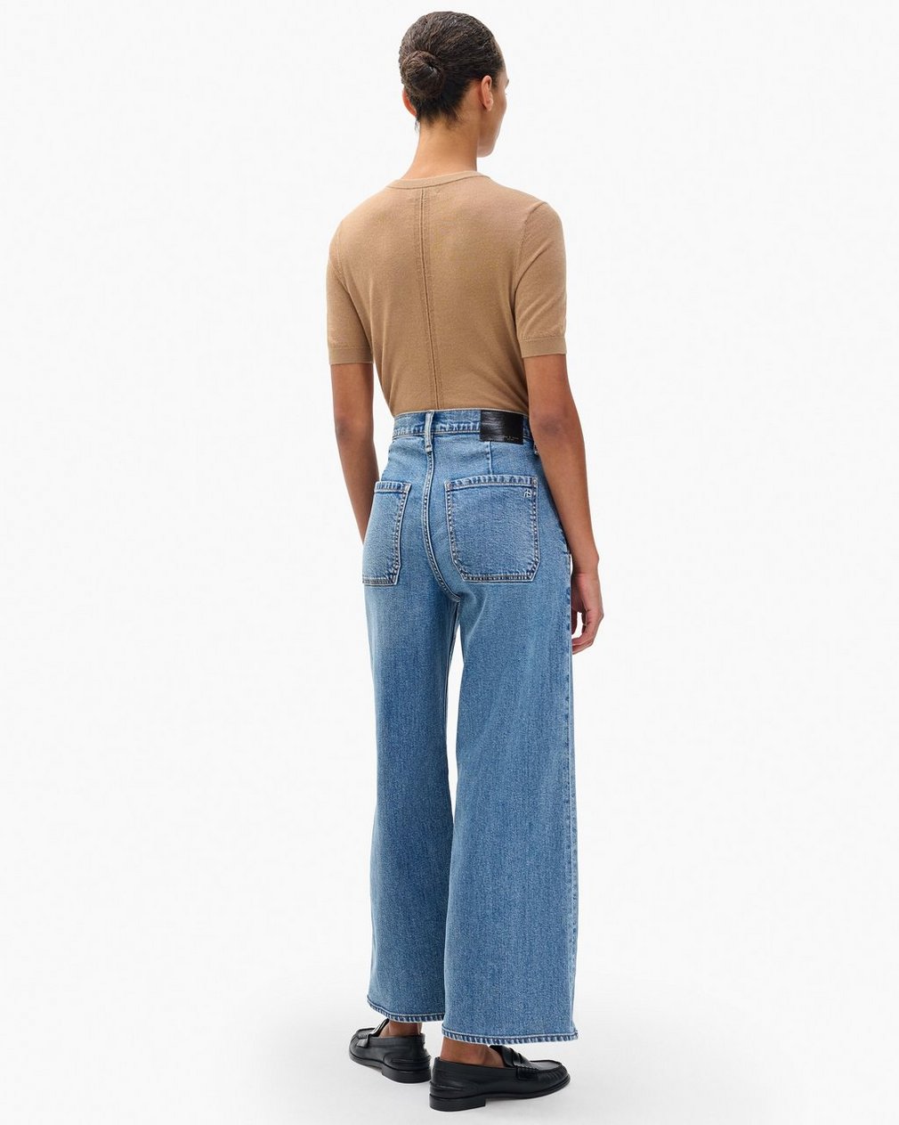 The Andi. High-waisted jeans with a slender thigh and a wide, ankle-length leg. Crafted from our Vintage Stretch denim for a broken-in look & feel with a comfortable touch of stretch. In Orian, a light-medium indigo wash.