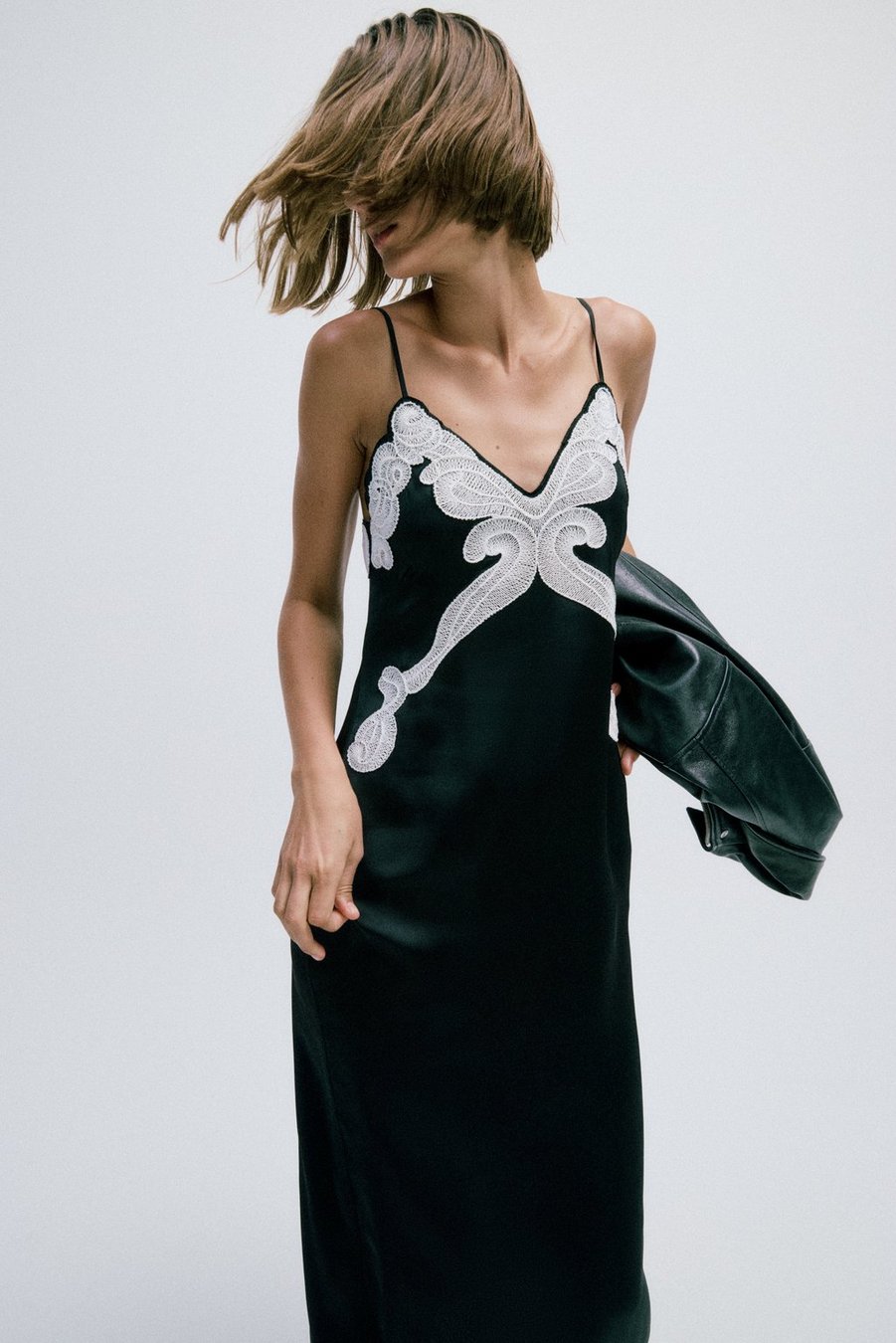 Ann Embroidered Slip Dress – Black