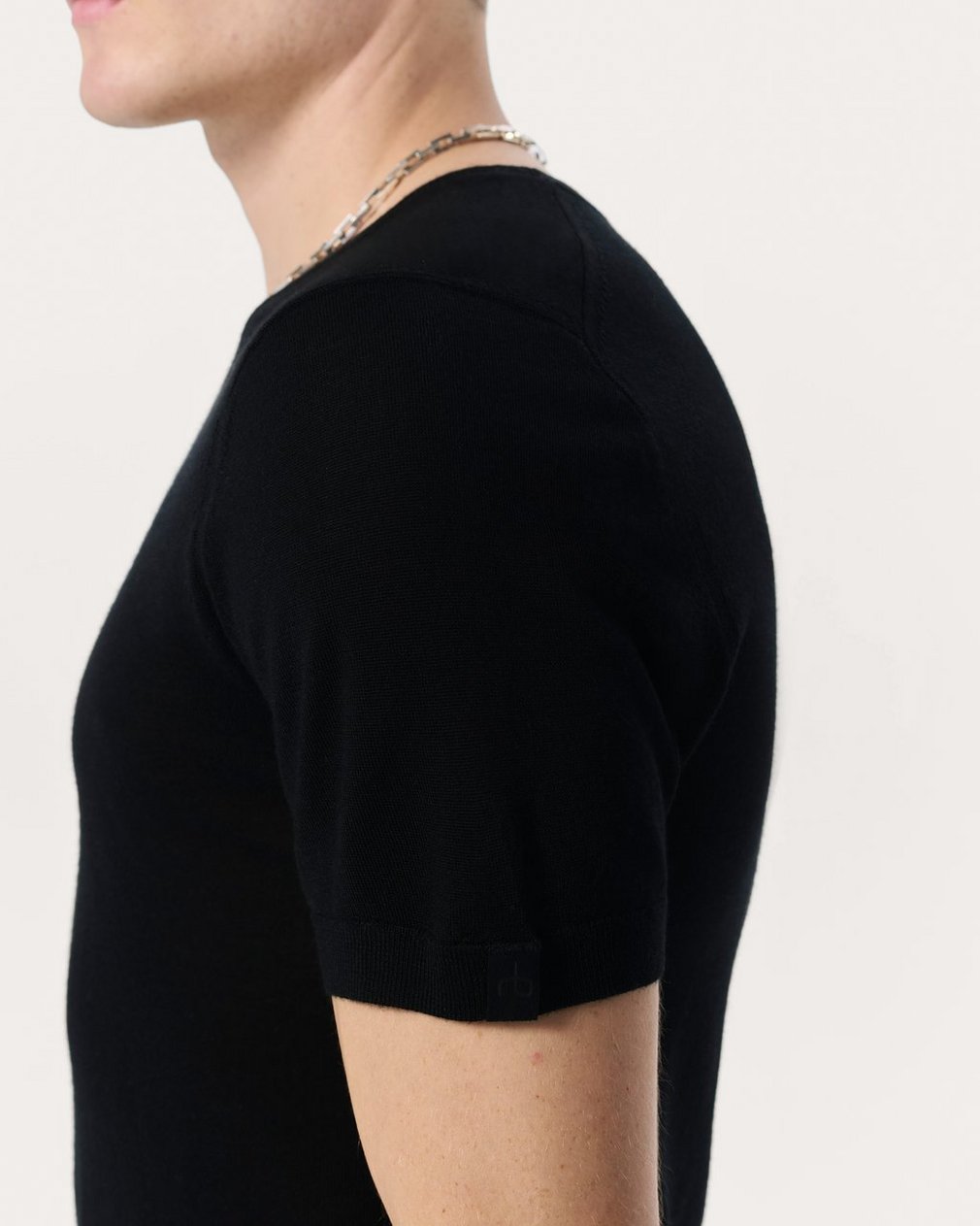 The polish of a sweater meets the ease of a tee. Knit from a lightweight wool blend, this crewneck T-shirt is a sophisticated option for warmer days. Its slim profile and fine jersey stitch give it a smooth, clean finish that elevates any outfit, whether worn alone or layered under a jacket.