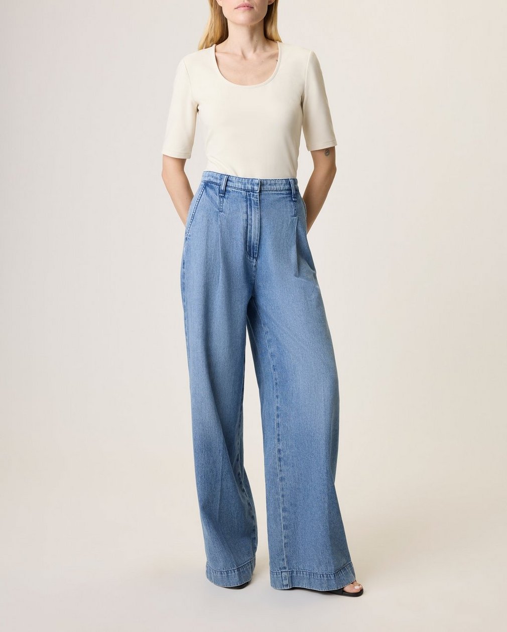 The Aurora (based on our popular Abigale) is pleated to achieve a wide leg with a relaxed fit; it is made to be just long enough to puddle at the floor. Crafted from our Cloud denim that’s supremely soft and super light, with an easy drape. In Stark, a dark indigo wash.
