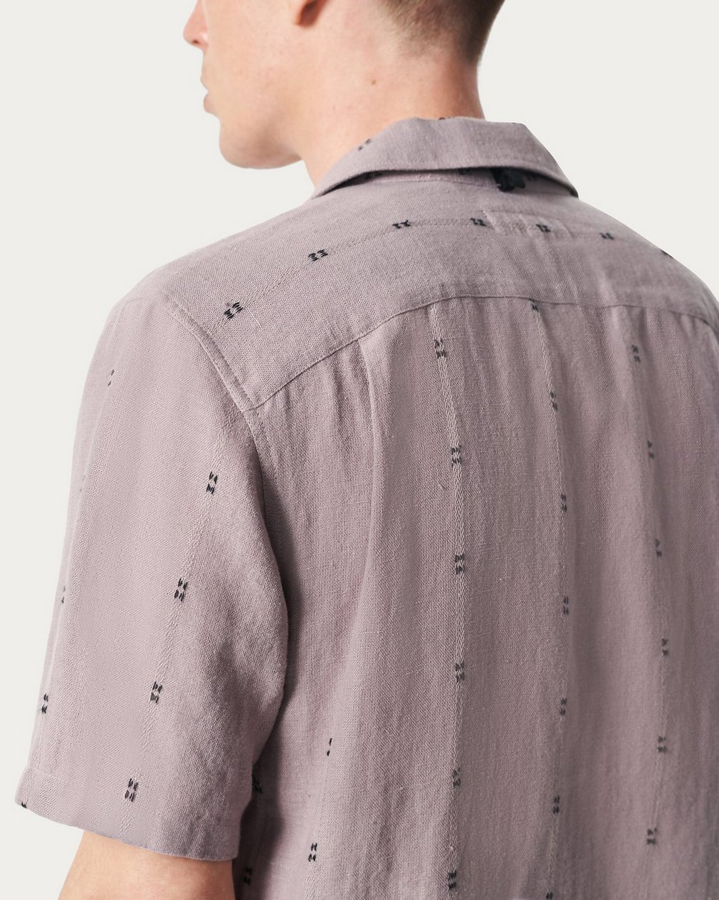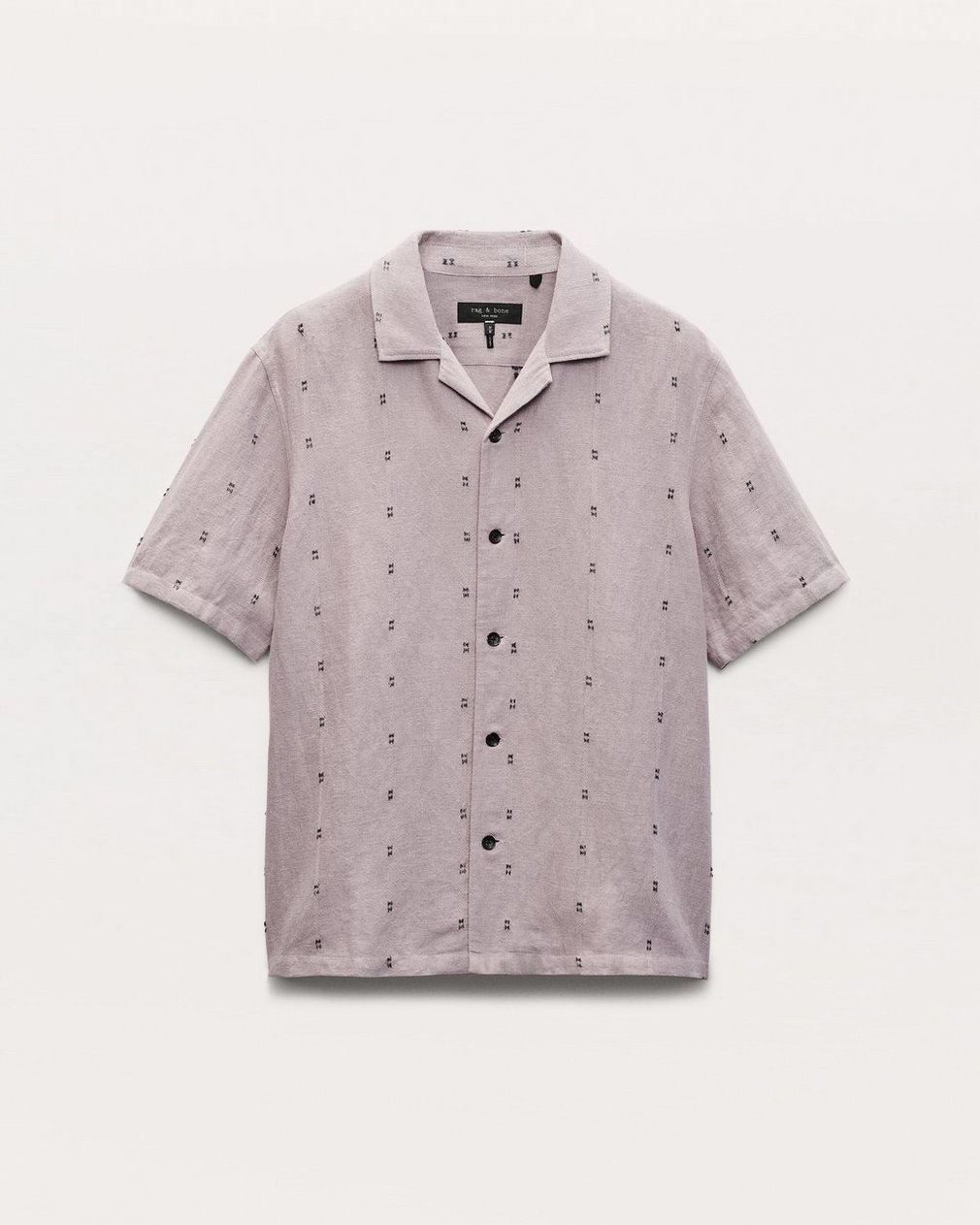 Cut for a classic fit, Avery is our easygoing take on the camp shirt. This short-sleeve version is updated for summer in a lightweight, breathable blend of cotton and linen. It’s embroidered with an allover broken stripe pattern that adds texture and dimension. Throw it on over shorts or swim trunks to go from the beach to the bar, or wear with jeans or chinos for a night out.