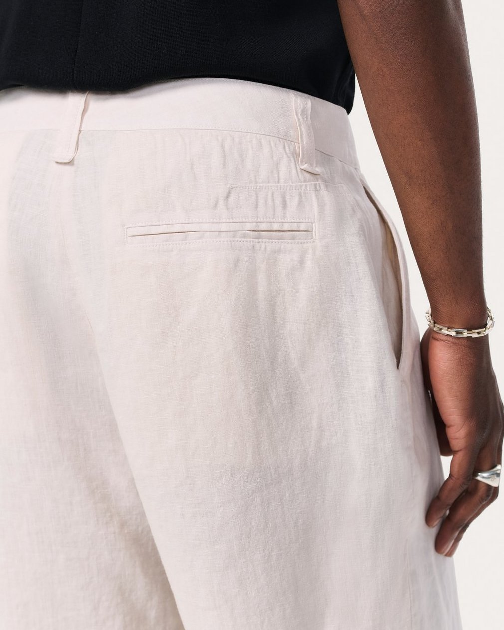 ? 100% linen? Zip fly with a hook-and-bar closure and keeper button? Slanted front pockets and back slit pockets? Machine wash cold & tumble dry low? Imported