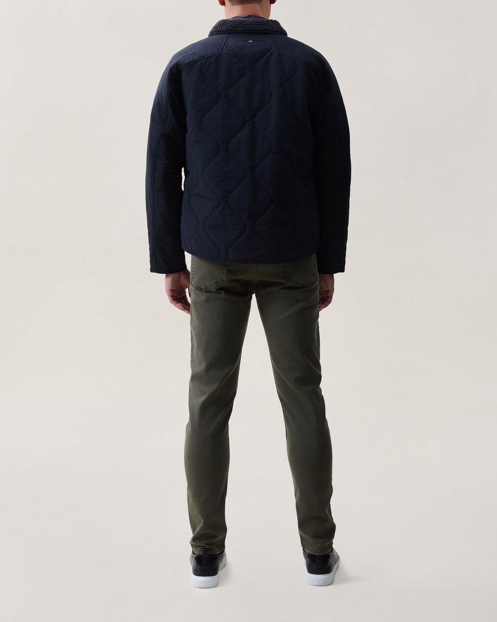 Field of dreams. A classic quilted jacket in black made from water-resistant nylon. Features a covered front zip and front body pockets. Plus stitching detail for a unique look and cinched wrists and a high collar for a warm feel.