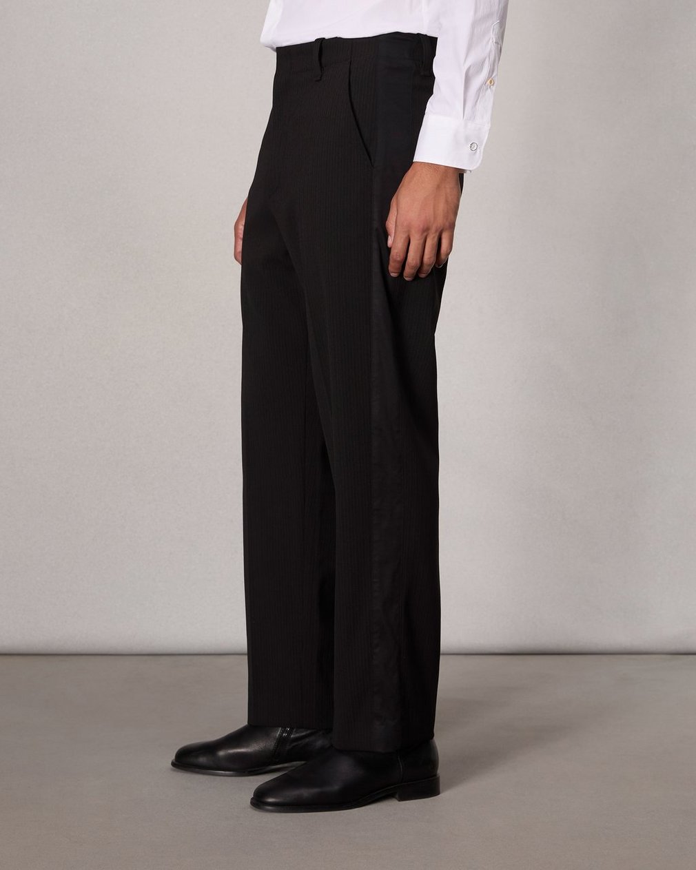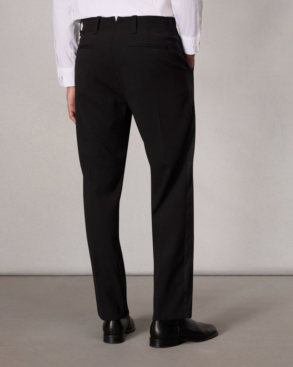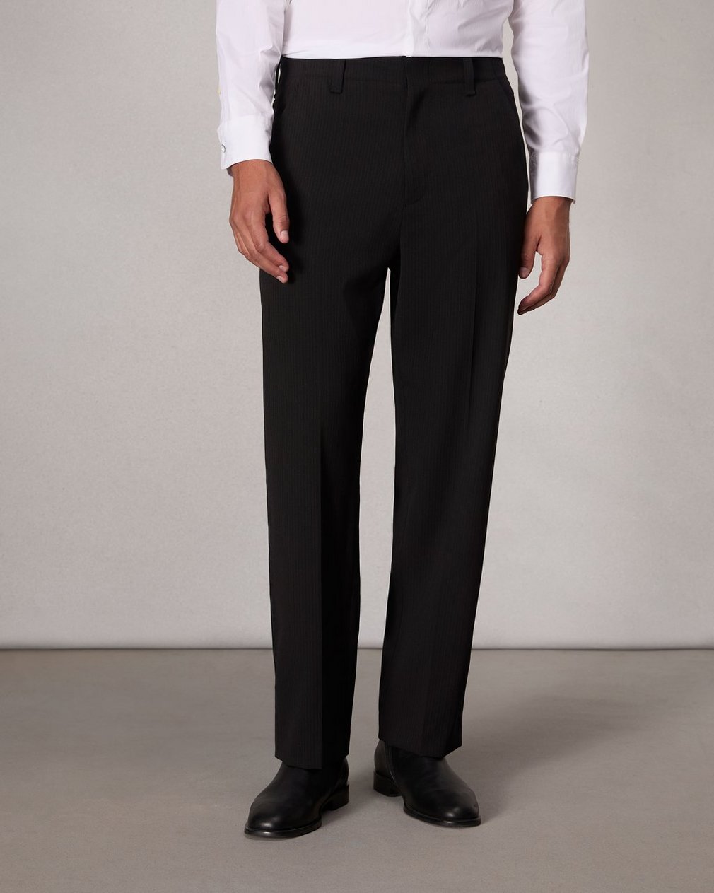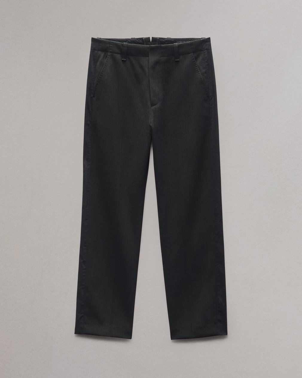 These relaxed fit-trousers are tailored from a fluid stretch wool blend with a muted pinstripe, making them easy yet refined. They’re perfect for any holiday occasion—especially when paired with the matching Anton Striped Blazer.
