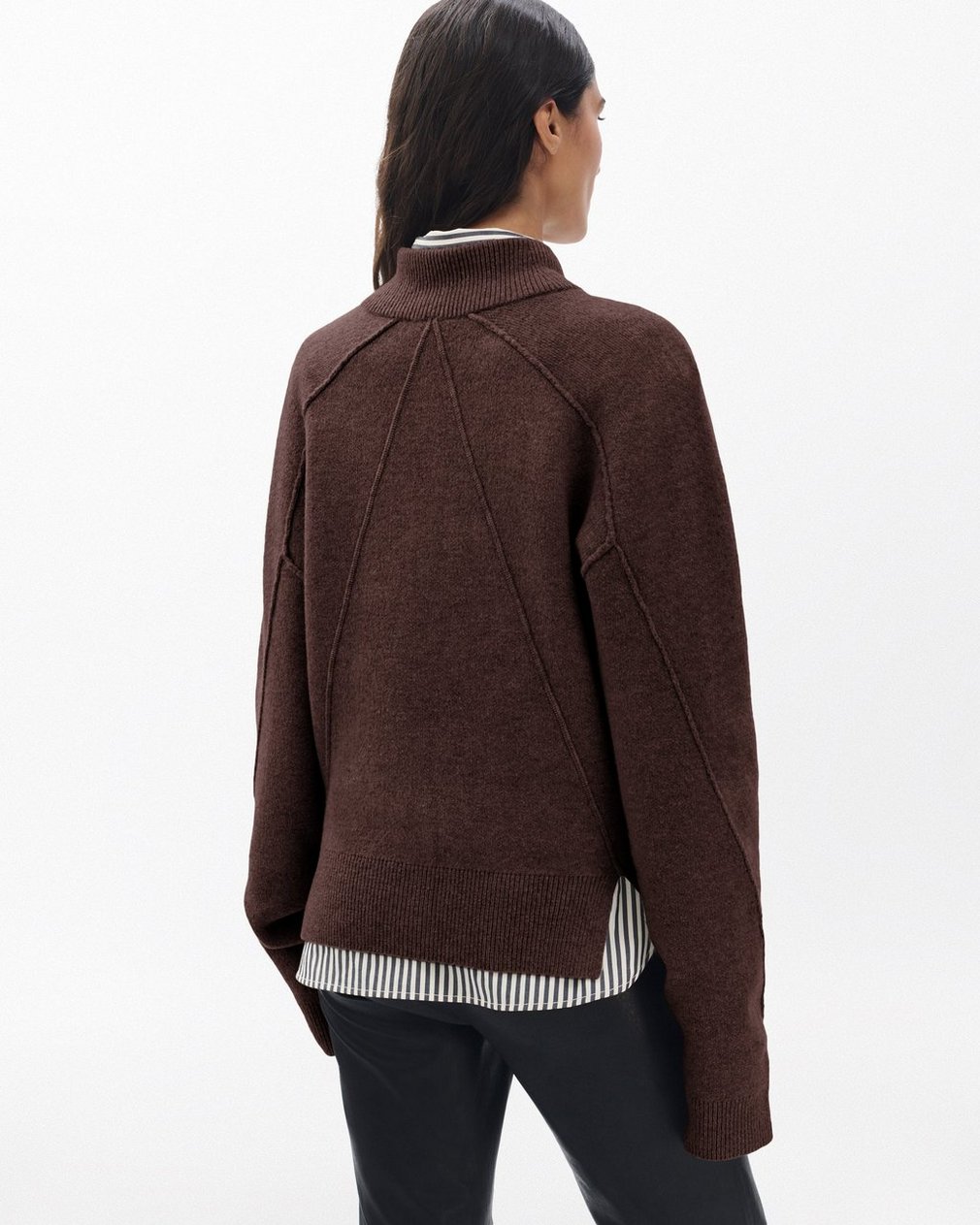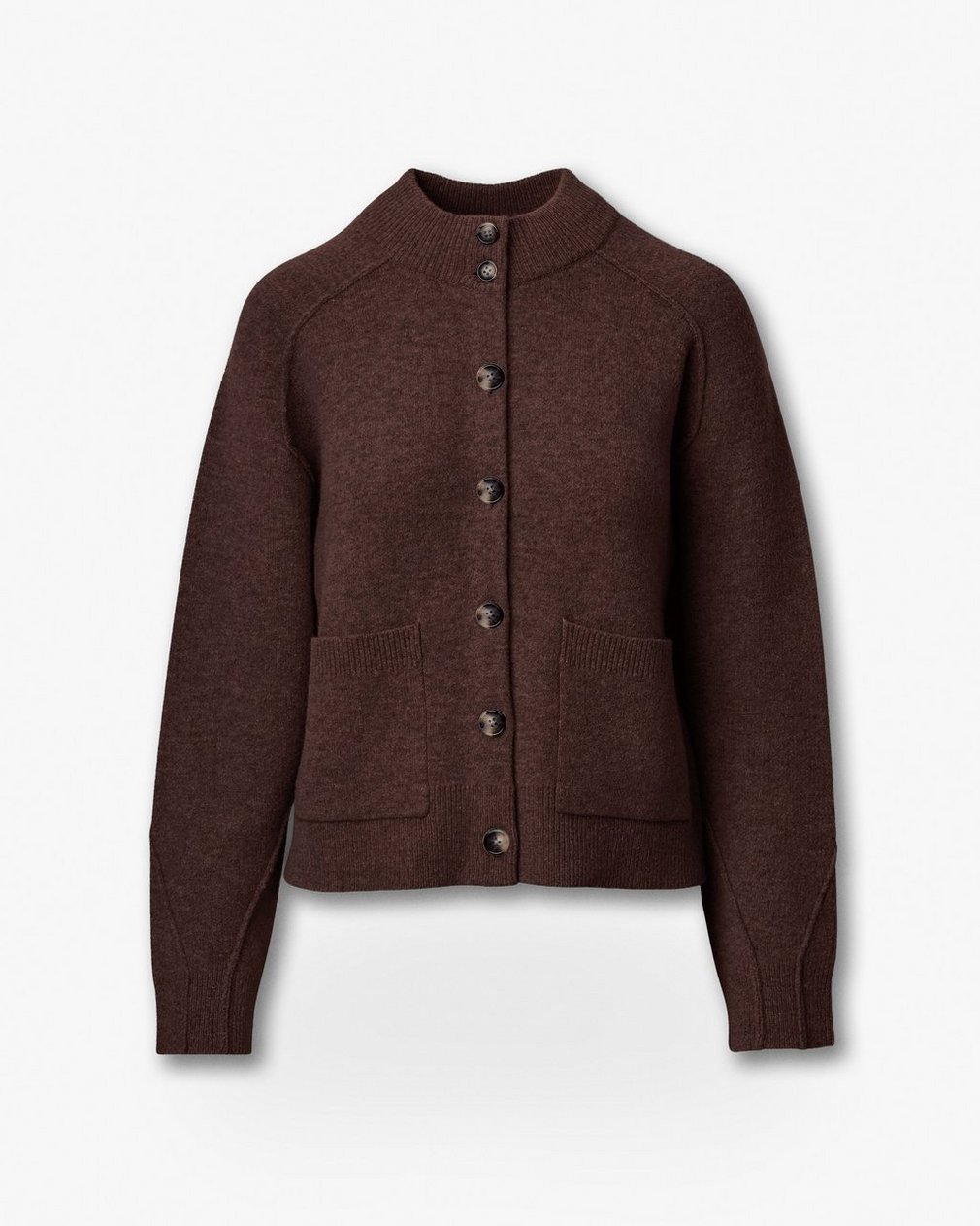 Cold weather staple. This cardigan is knit from a soft wool blend for a relaxed fit with a high mockneck. It’s finished with faux-horn buttons and our signature seaming details. The perfect layer for any look, from jeans and a tee to a striped shirt and leather pants.