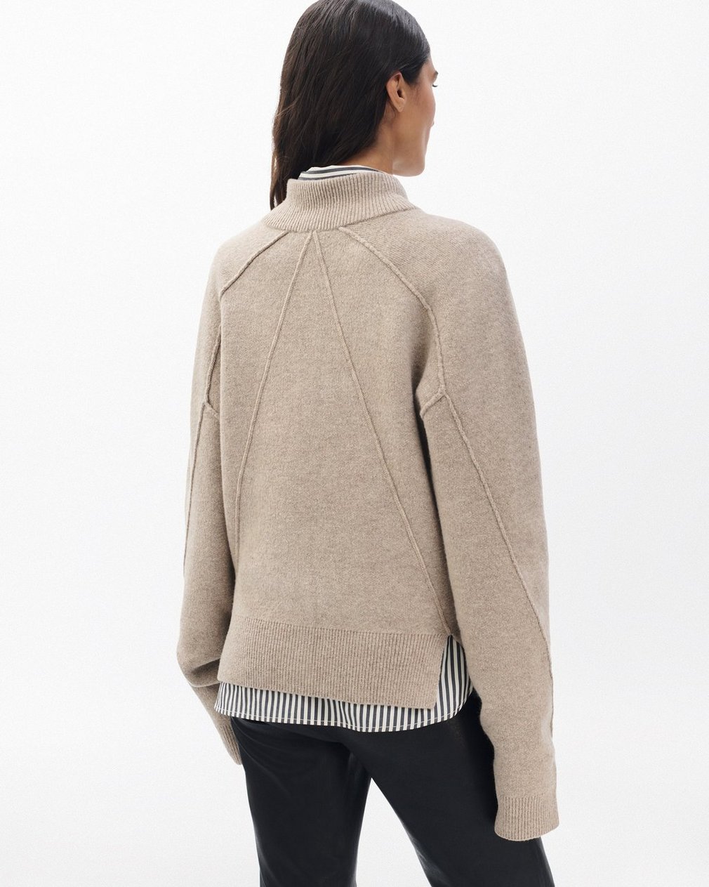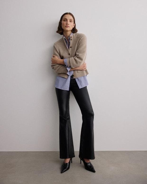 Cold weather staple. This cardigan is knit from a soft wool blend for a relaxed fit with a high mockneck. It’s finished with faux-horn buttons and our signature seaming details. The perfect layer for any look, from jeans and a tee to a striped shirt and leather pants.