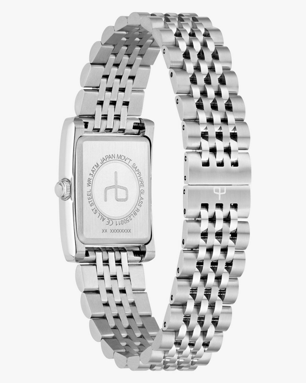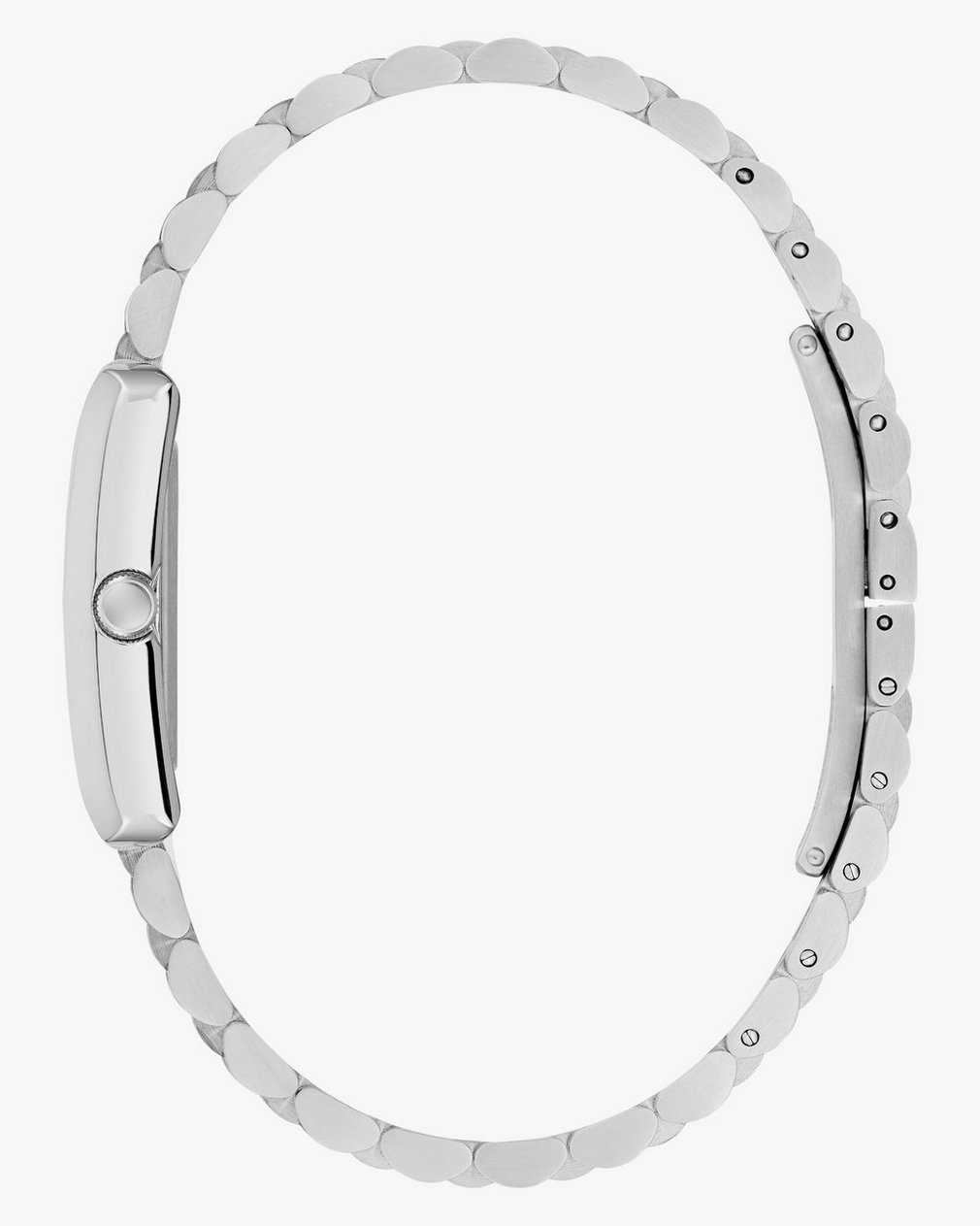 ? Polished rectangular silver-tone stainless steel case