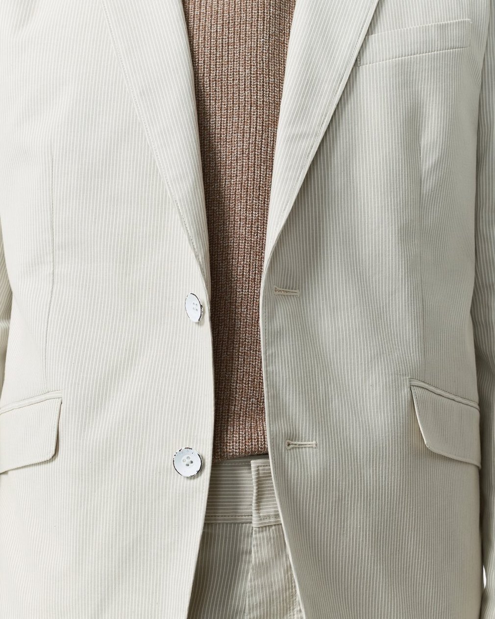 Our take on heritage tailoring. This striped single-breasted blazer is crafted for a classic fit from lightweight yet structured stretch cotton. Finishing touches like leather button backs and understated flap pockets complete its refined look. Pair it with the matching trousers or shorts to create a patterned suit ideal for any season.