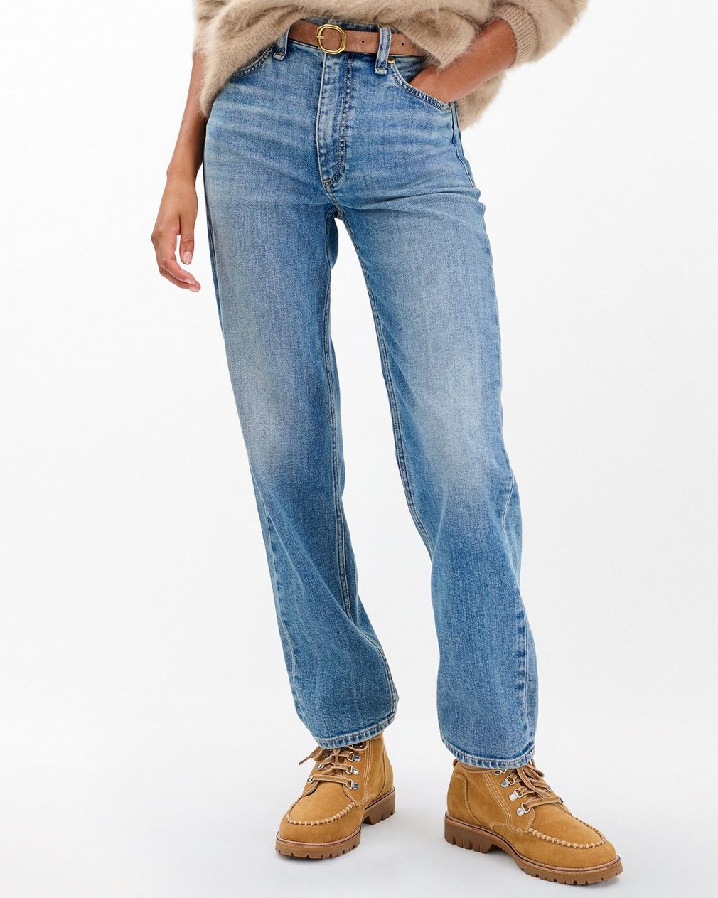 ? Upper: 90% leather, 10% shearling ? Lining: 90% shearling, 10% suede? Midsole: 100% EVA? Lace-up closure with back tab for wrap-around lacing? Comes with a pair of contrast-detail laces and a pair of orange pattern pop laces? Contrast shearling collar and lining? Signature whipstitching in tonal leather around the toe? Based on the delicate nature of the materials, please handle with care? Imported