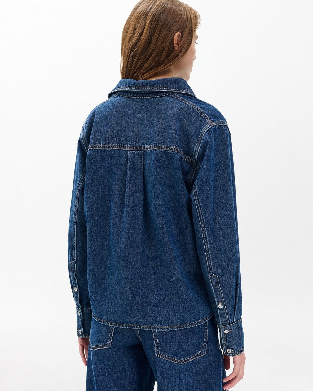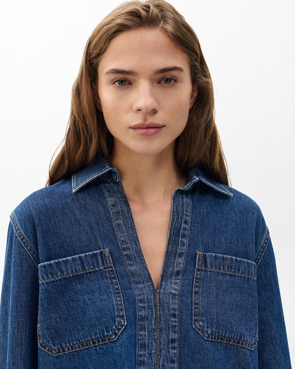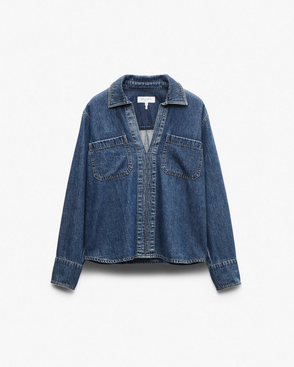 A V-neck, long-sleeve shirt that borrows details from classic tailoring. Crafted from Lightweight Rigid non-stretch denim that provides structure, but breaks in over time for a soft and comfortable feel. In Kennmore, a dark indigo wash.