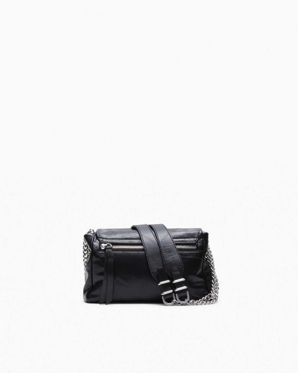 The classic flap. Done our way. Crafted from leather with a bit of character, this new smaller-scale It bag combines a slightly structured silhouette with a sliding chain-and-leather strap that’s long enough to wear across the body and double up on the shoulder. Finished with a metal clasp, rb logo hardware, and an inside zip pocket that keeps essentials organized, it’s made for crossing cobblestones or club floors.