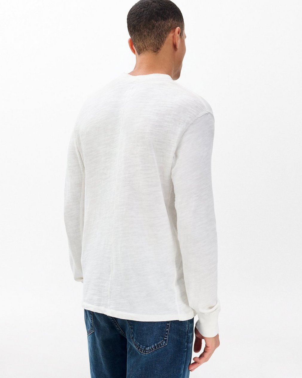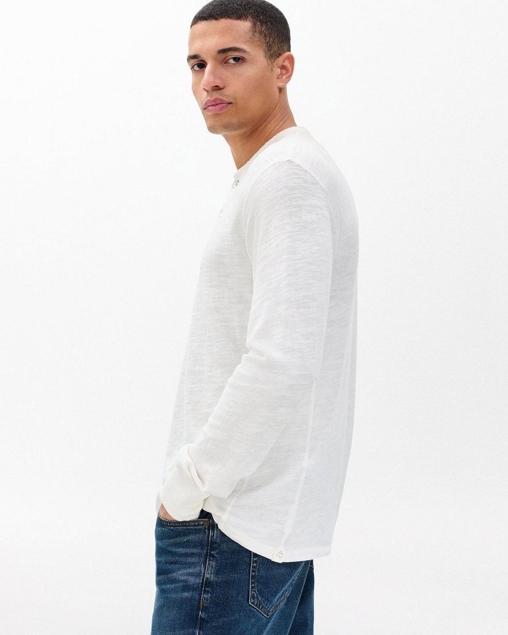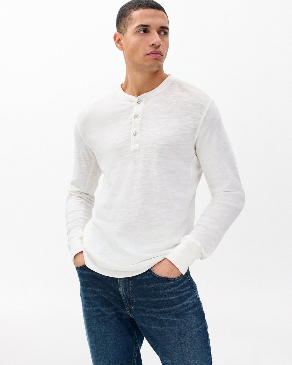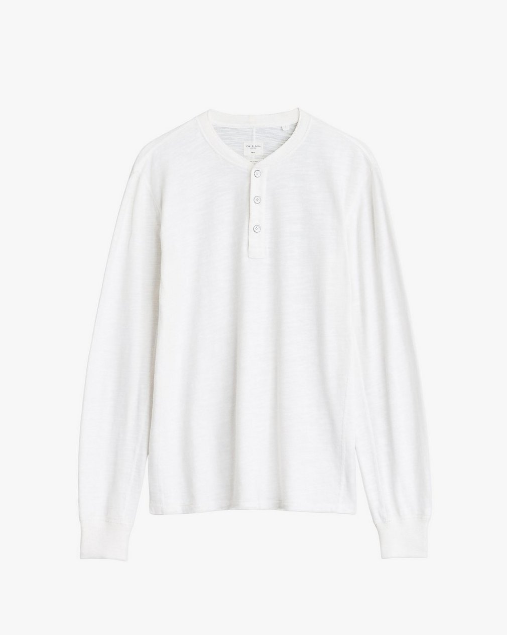 ? Classic fit long sleeve henley? Size medium: Back length 27.2″, chest 40″, sweep 40″, sleeve 35.25″? Model is 6’2″ wearing size medium