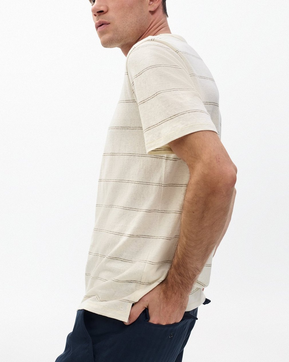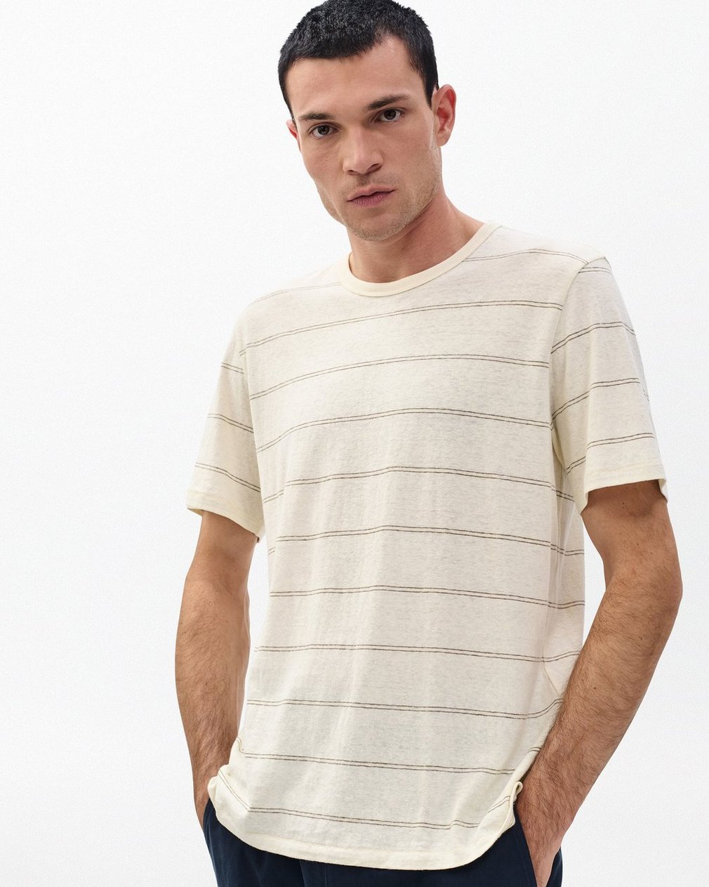 A nod to varsity style. This short-sleeve striped T-shirt is one you’ll reach for again and again. Crafted from a blend of hemp and organic cotton, it’s incredibly lightweight and breathable with an airy, effortless look.