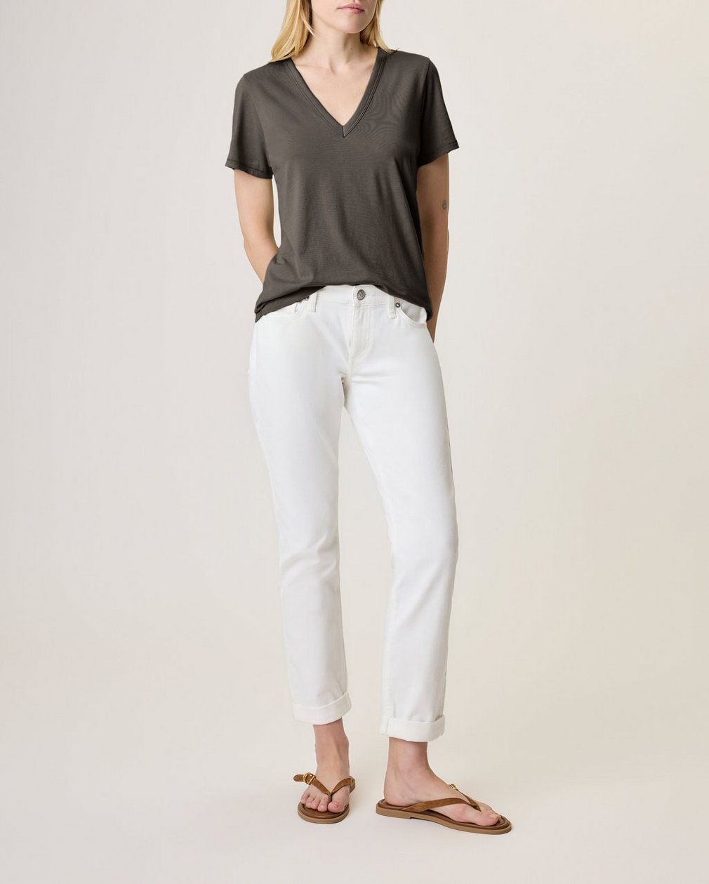 Designed to be the core of your wardrobe. Our classic V-neck tee is cut with short-sleeves from fluid cotton-viscose jersey.