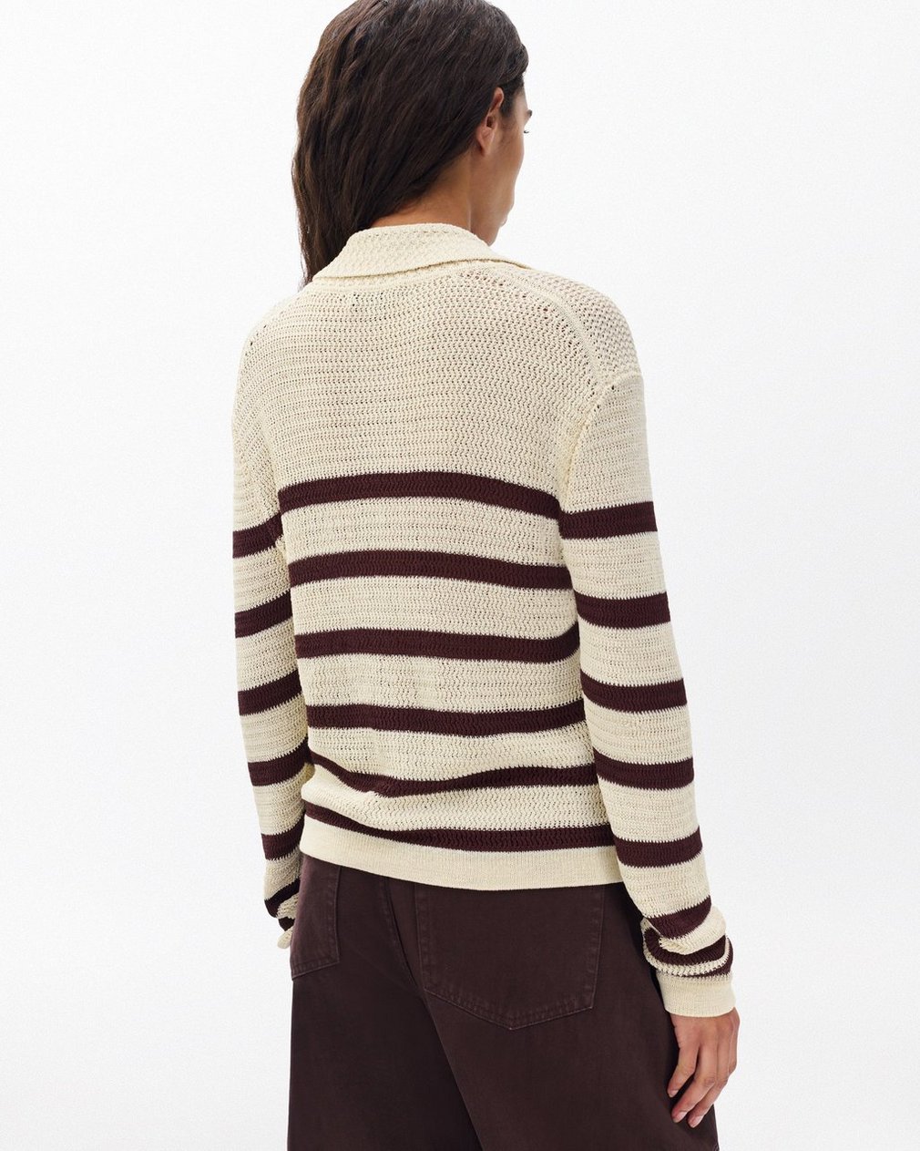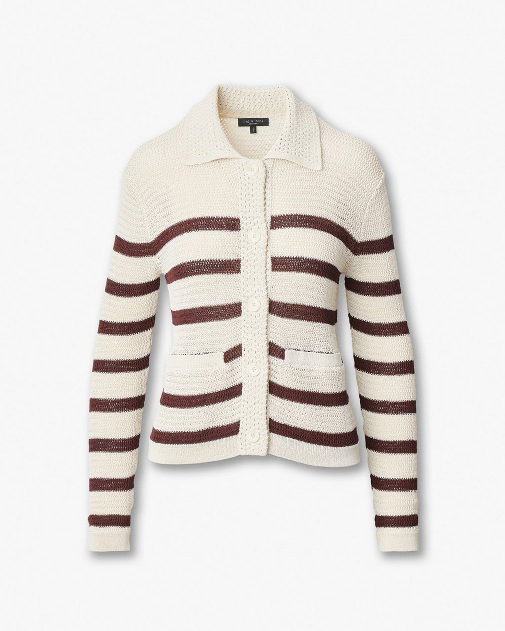 Stripes with substance. This collared cardigan sweater is knit from soft cotton-blend yarns with textured stitches for an easy, relaxed fit. Pair it with your favorite denim for an effortlessly polished look that carries seamlessly into warmer weather.