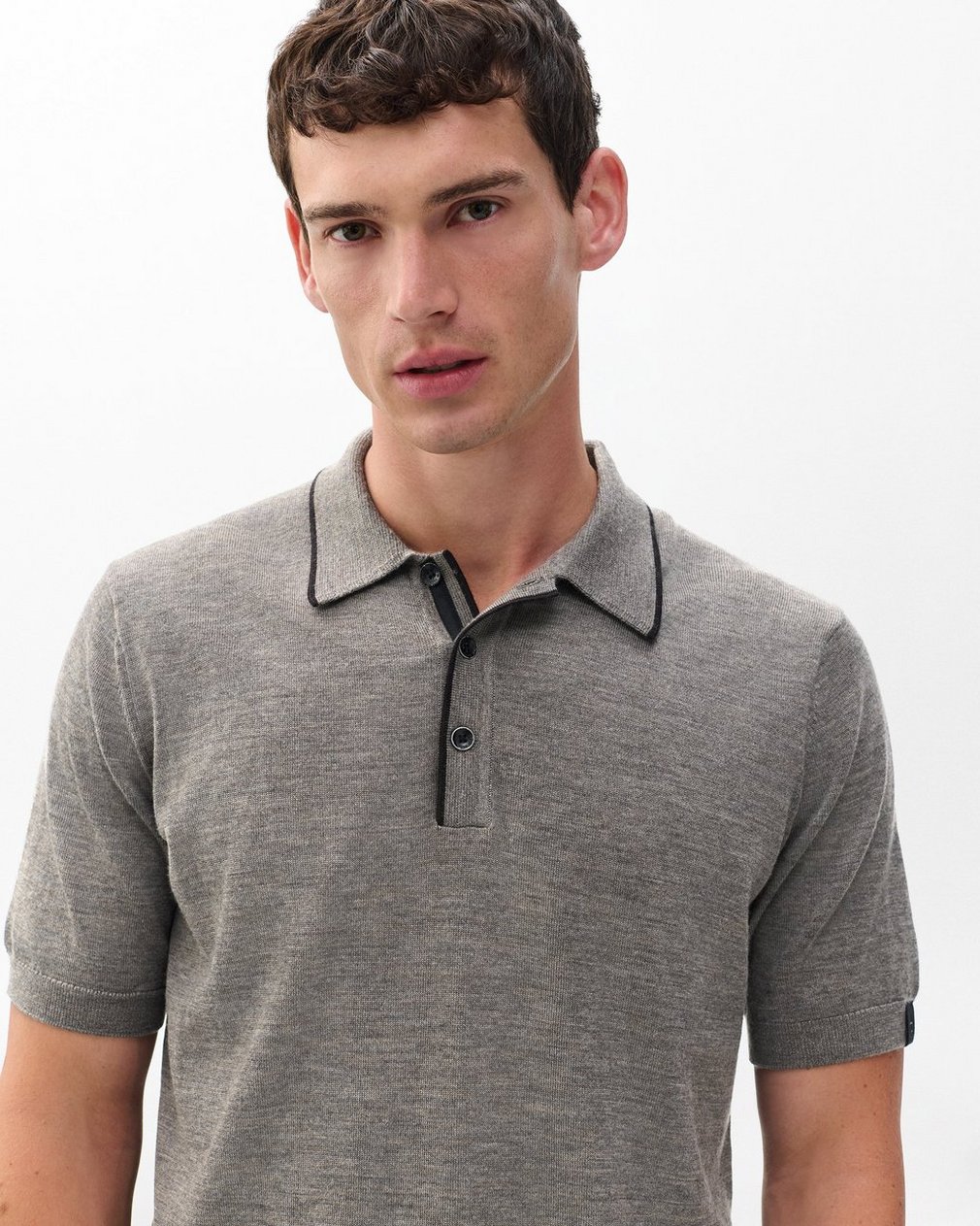 Next-level texture. Combining the comfort of a sweater with the polish of a polo shirt, this short-sleeve top is ideal for year-round wear. It’s knit from luxuriously soft wool and cashmere in a unique range of stitches that create tonal dimension. Fully-fashioned sleeves, fine ribbed trims, and contrast edges along the collar and placket complete its elevated look.