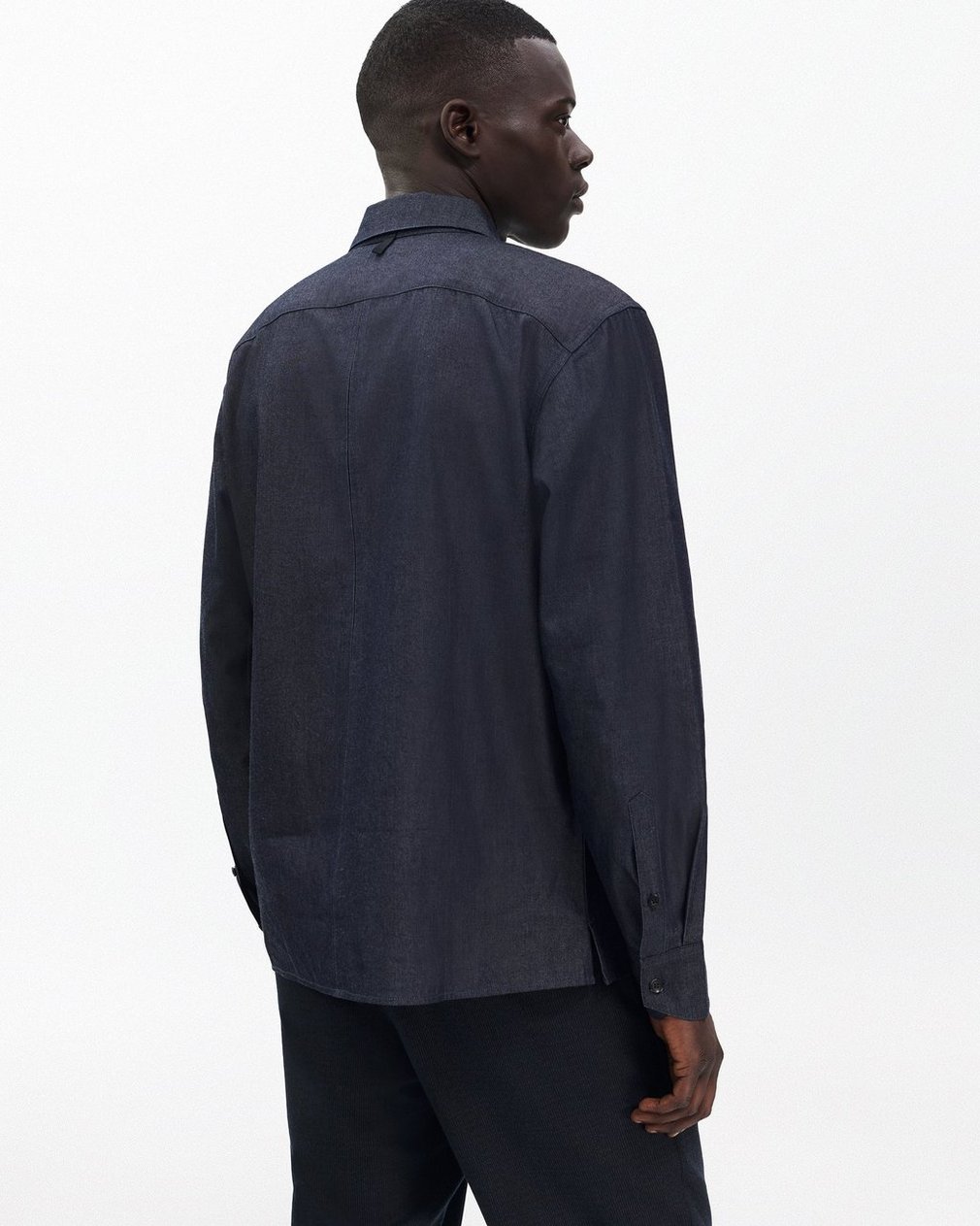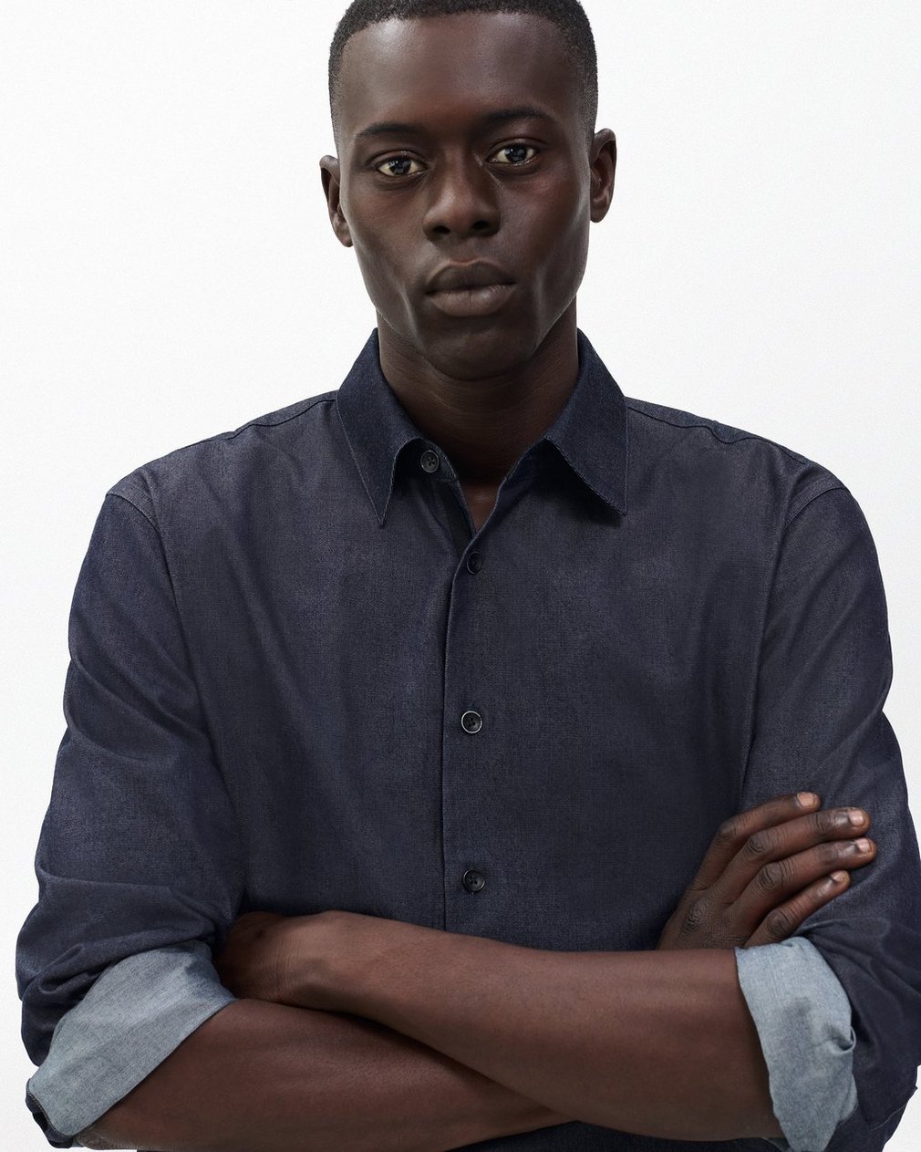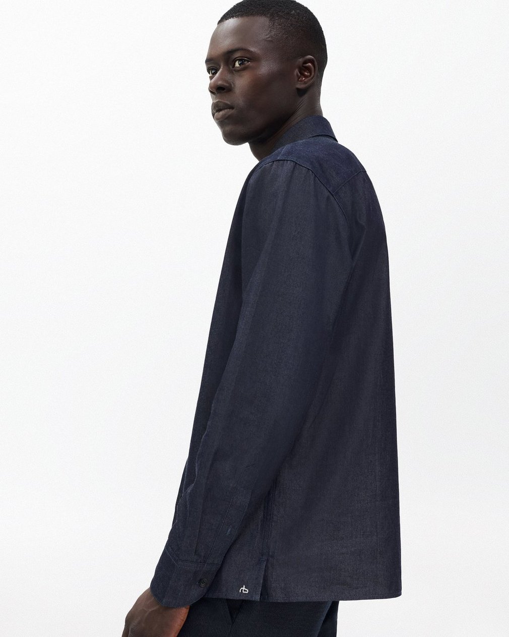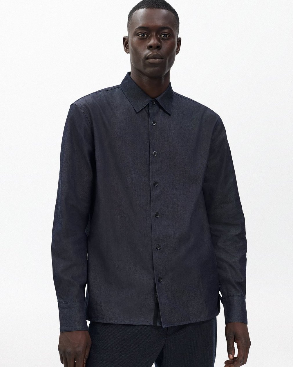 Dalton is our favorite button-up shirt. Cut with a classic, laid-back fit and straight hem perfect for any outfit. This long-sleeve version is expertly tailored from structured yet comfortable raw indigo denim woven in Japan. Wear it simply and solo or layered under a blazer.