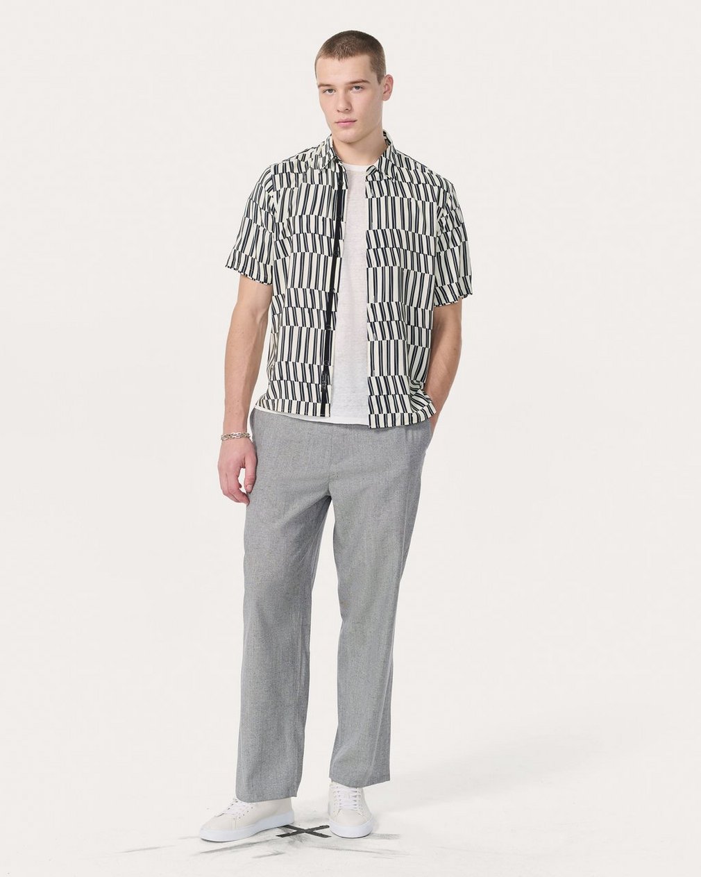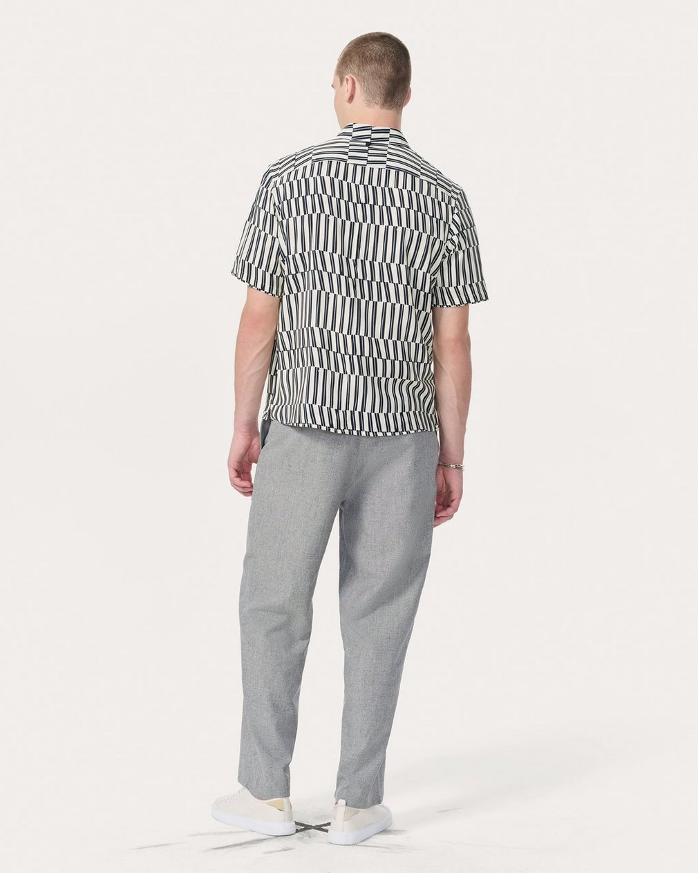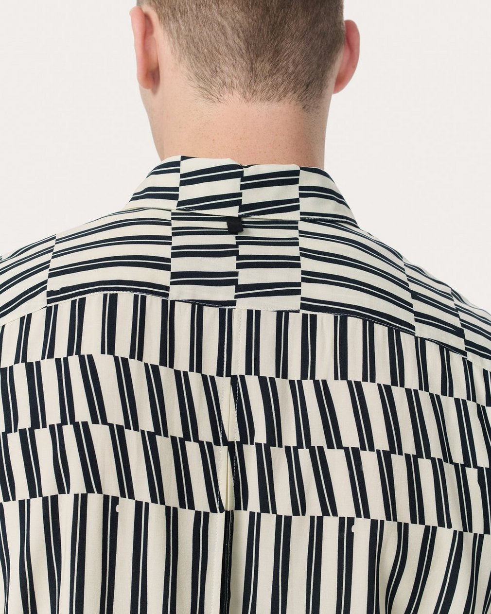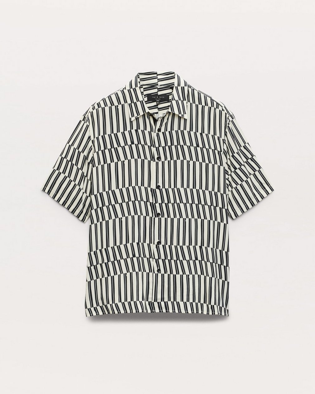 Our favorite button-up shirt. Cut with a classic, laid-back fit and straight hem perfect for any outfit. This short-sleeve version is updated for the season in a fluid, lightweight fabric. It’s printed with an abstract stripe pattern that adds graphic dimension ideal for summer days (or nights) out.