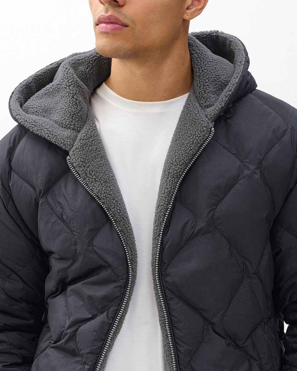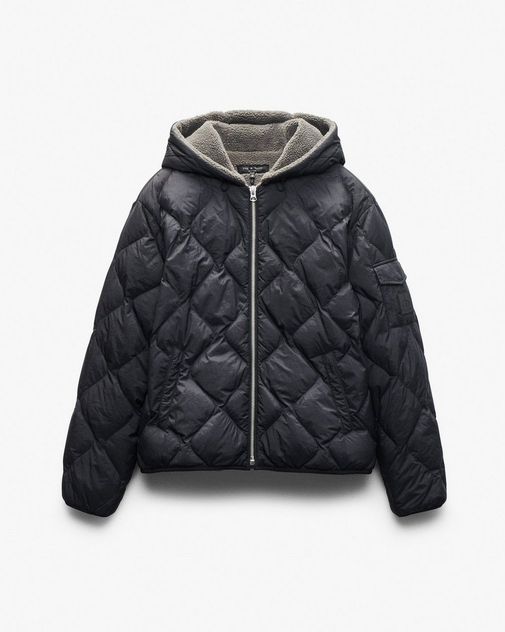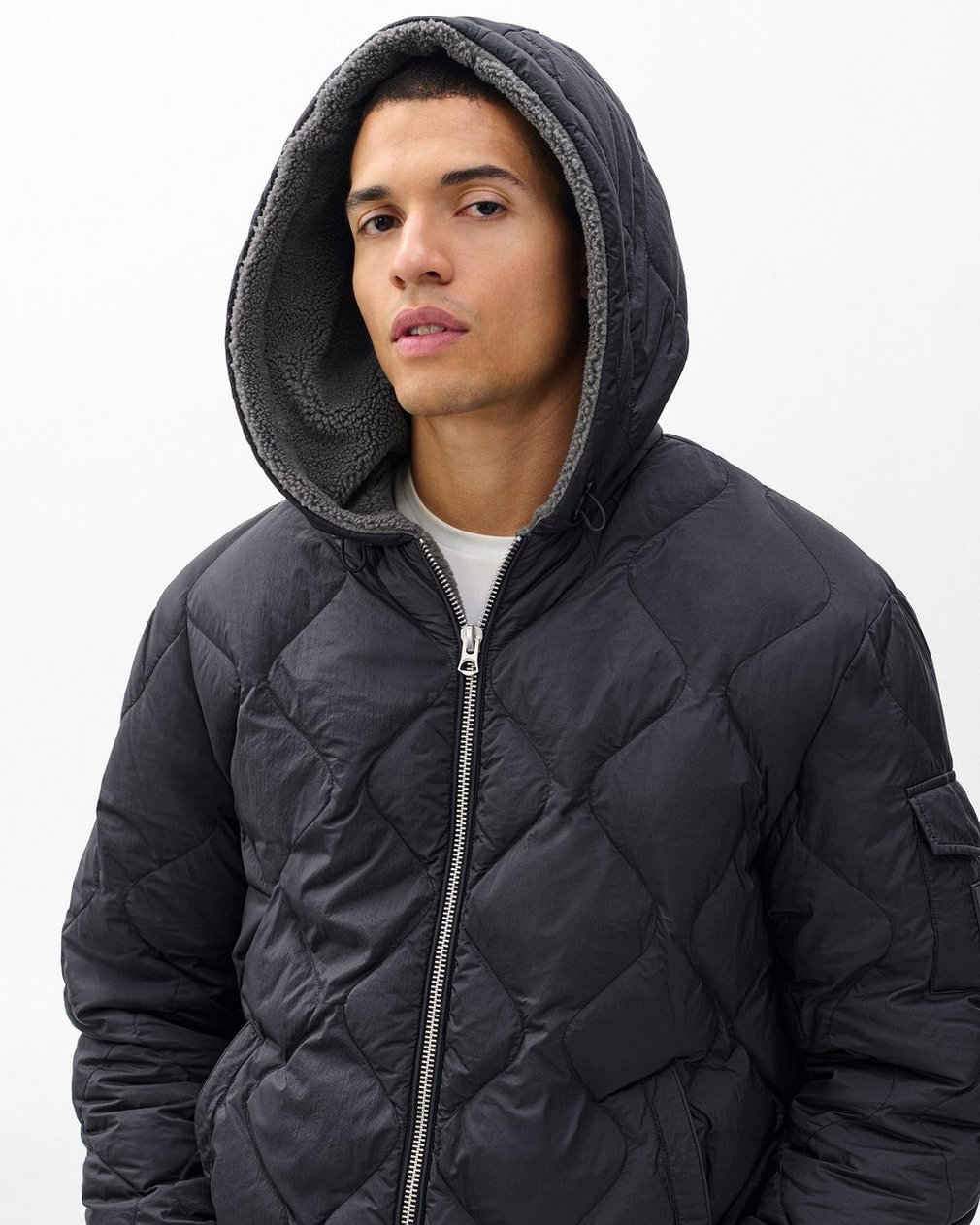Form meets function. Our best-selling padded outerwear returns in a hooded zip-up jacket crafted from onion-quilted technical nylon. Filled with featherlight down and lined in plush sherpa, it delivers comfort and warmth through the season’s cold, unpredictable weather.