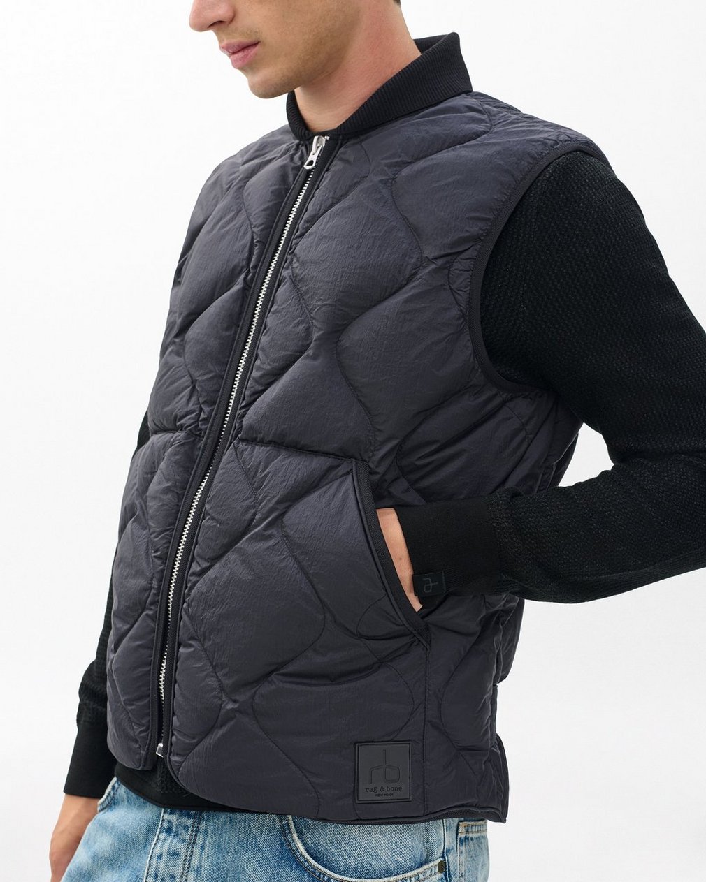 Form meets function. Our best-selling padded outerwear returns as a utilitarian zip-up vest crafted from onion-quilted technical nylon. Featherlight down fill delivers warmth without the weight, whether you wear it solo or layered under a structured coat.