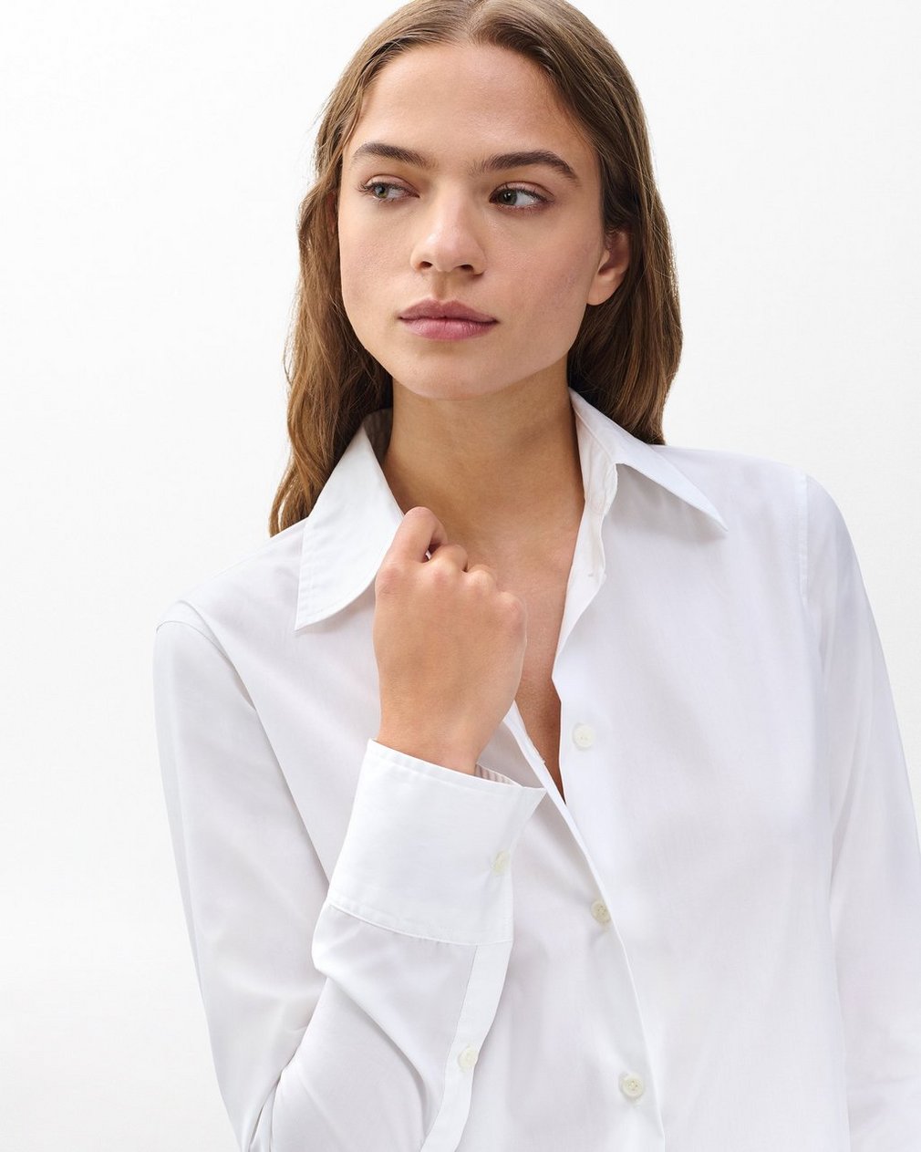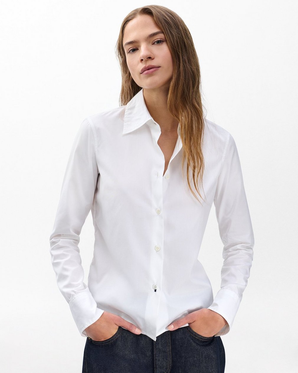 Solid choice. A forever staple, reimagined in lightweight cotton poplin with a slim profile that’s perfectly tailored from shoulder to hem. It’s the perfect button-up shirt to wear under a blazer. But looks just as sleek and chic by itself.