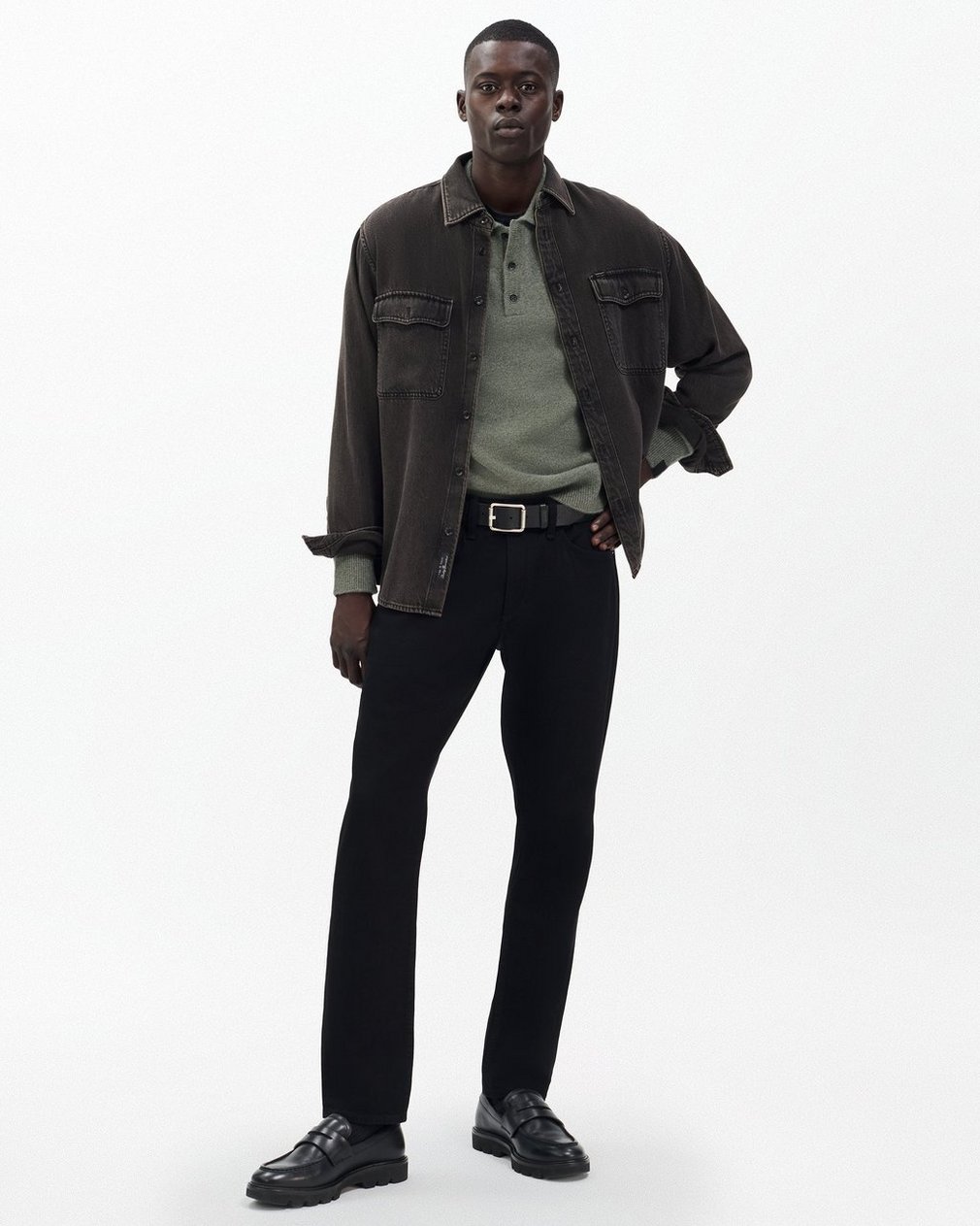 ? Classic fit? Fits true to size? Size medium: Back length 26″, chest 42.5″, sweep 33.5″, sleeve length 34.25″? Model is 6’1″ wearing size medium