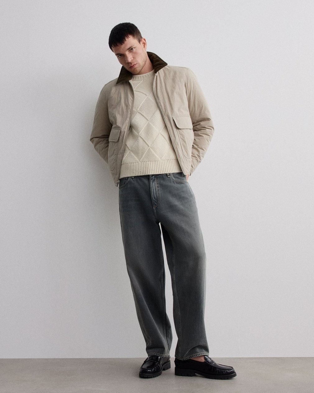 Winter workwear with urban appeal. Crafted from a cotton blend and down-filled, this classic front-zip jacket is ultra-warm without sacrificing style. Finished with a contrast corduroy collar and lining. Wear it from city streets to country getaways.