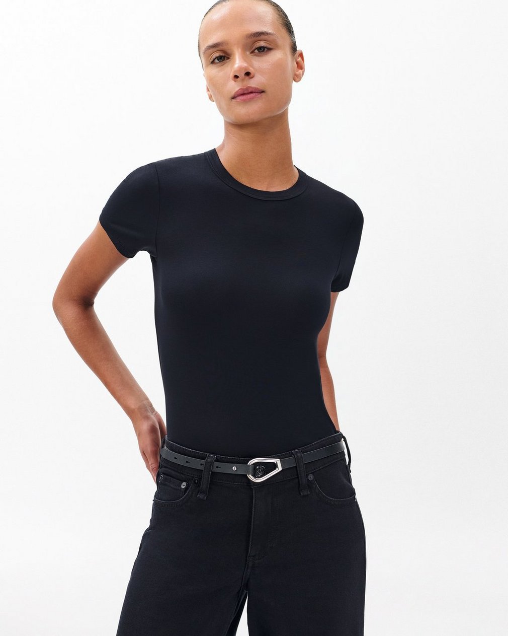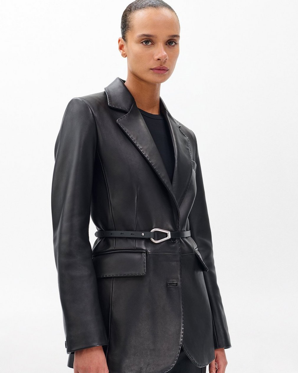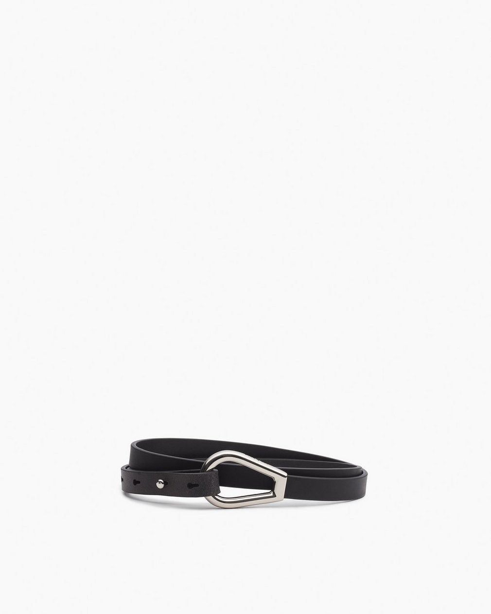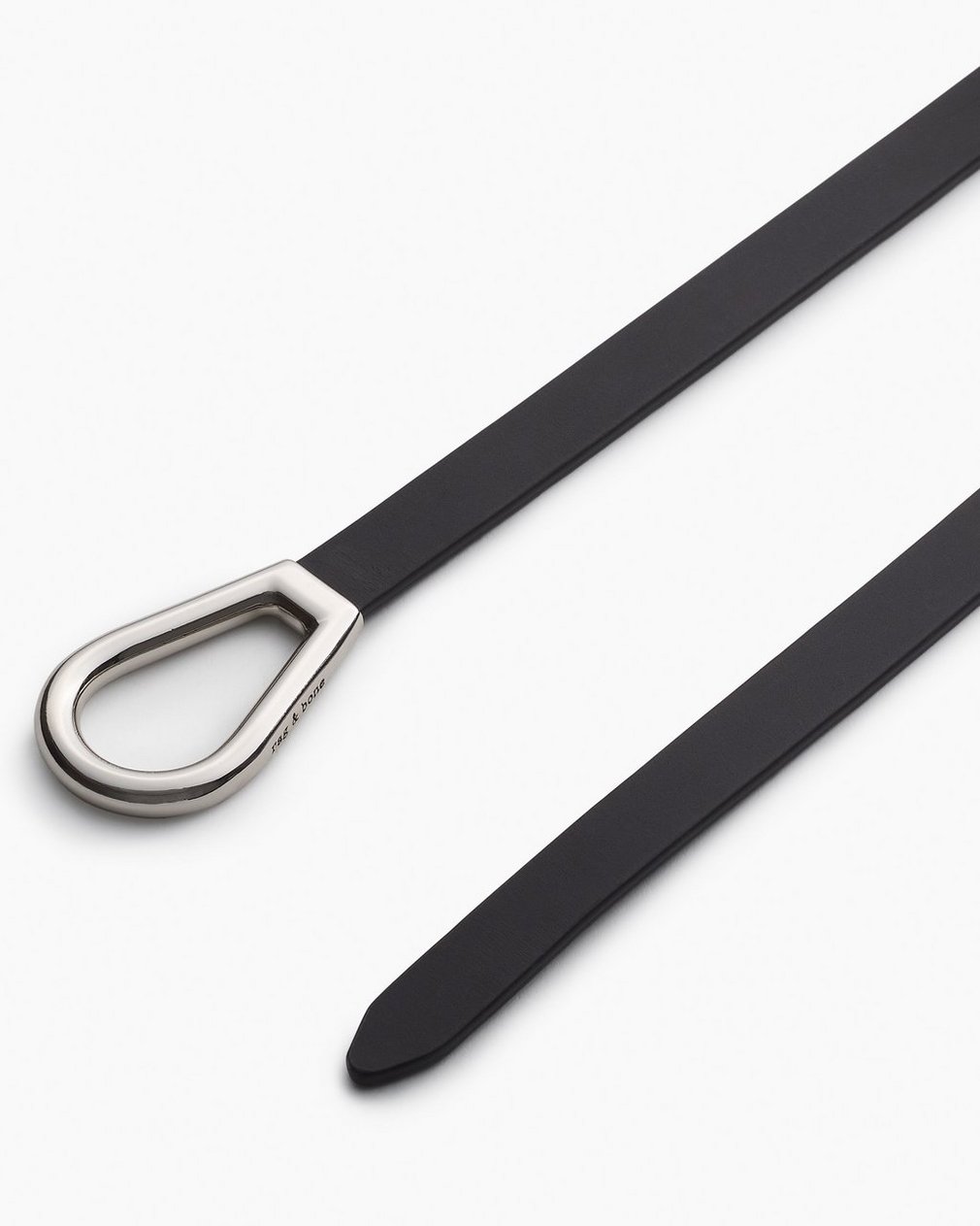Thread it through. Crafted from a soft Italian-milled leather, this ultra-slim belt features a simple yet bold curved metal buckle. It’s designed to cinch the waist with the end artfully tucked once secured.