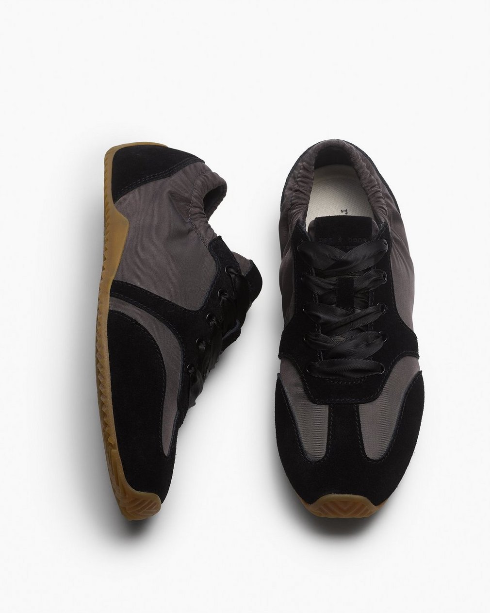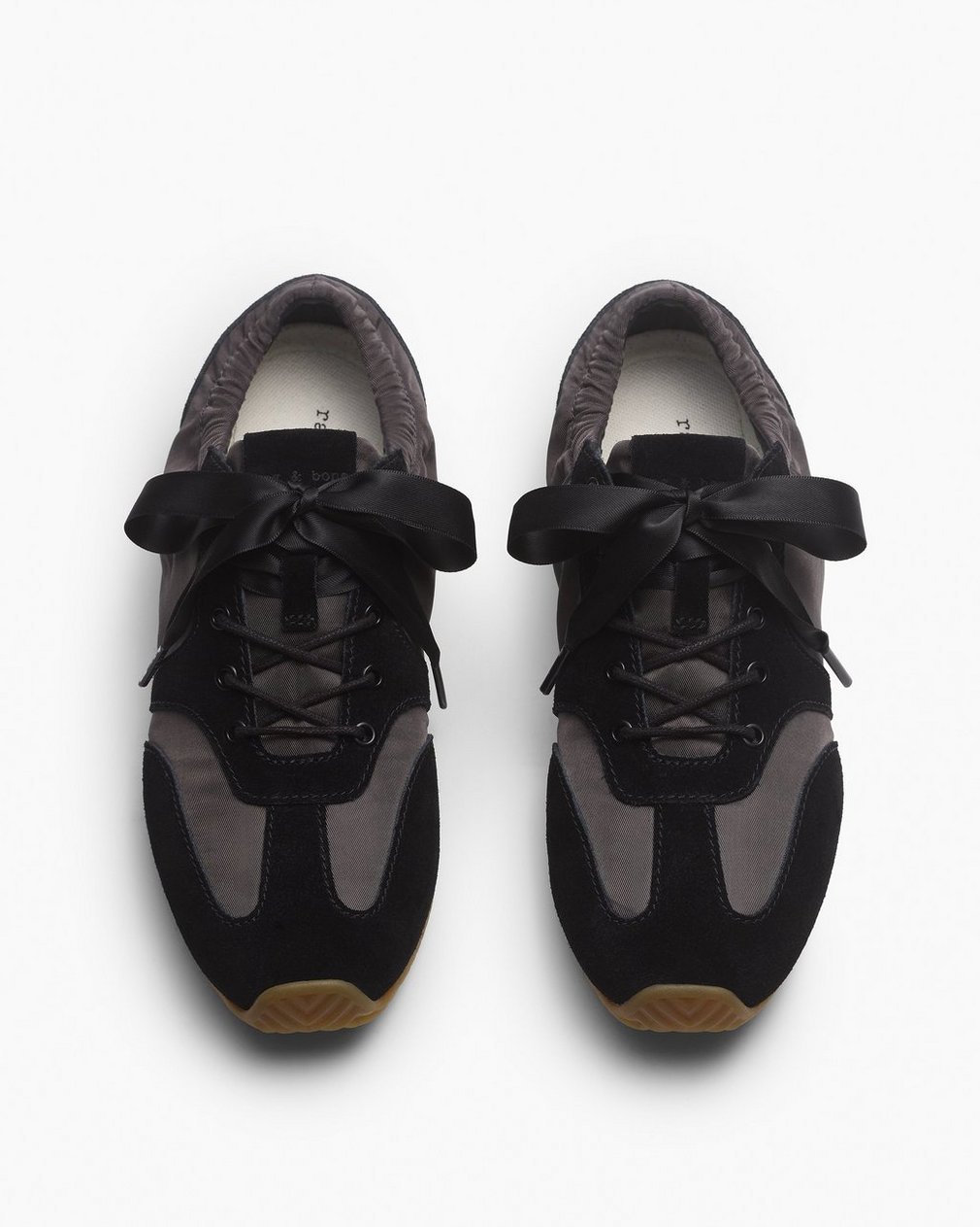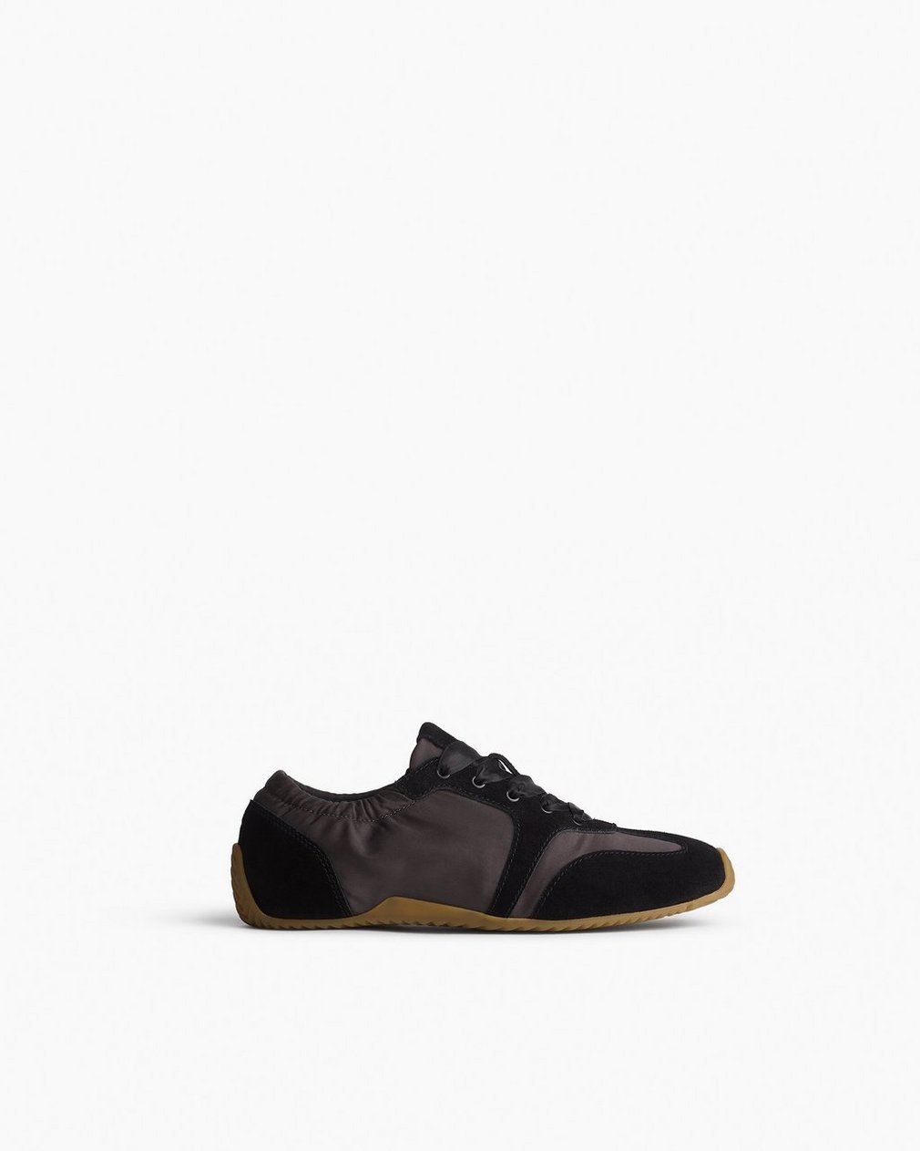 Ballet flats meet our (ultra) slim runners. Crafted from flexible twill and soft suede, these lace-up sneakers feature an elasticated collar that makes them easy to slip on and off. They’re finished with tonal round and satin ribbon laces which tie in neat bows. Inside, breathable mesh-covered, dual-layer OrthoLite? foam insoles engineered for optimal stability, support, and comfort deliver that “new sneaker feel” with every step.