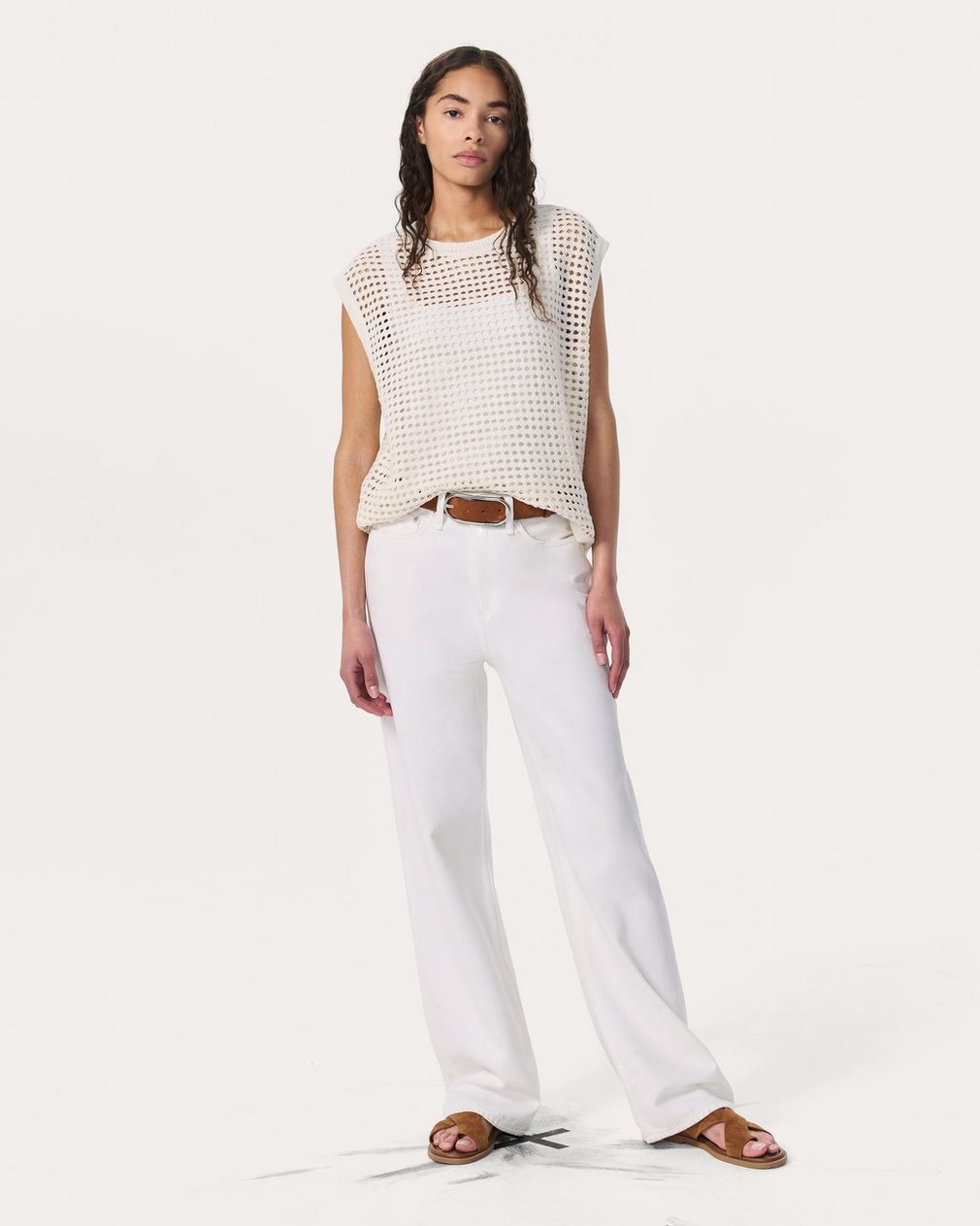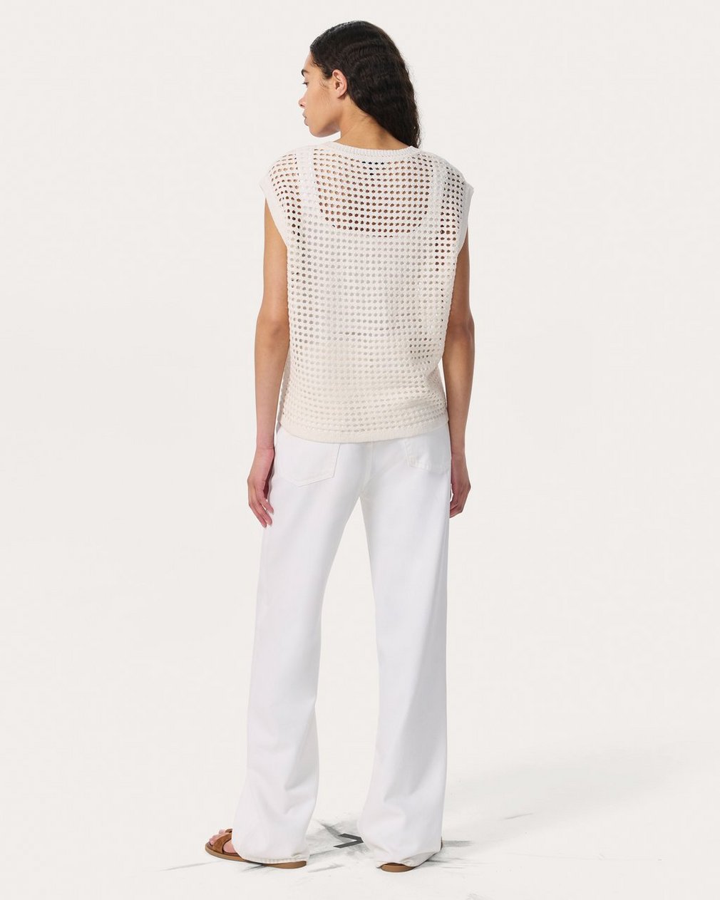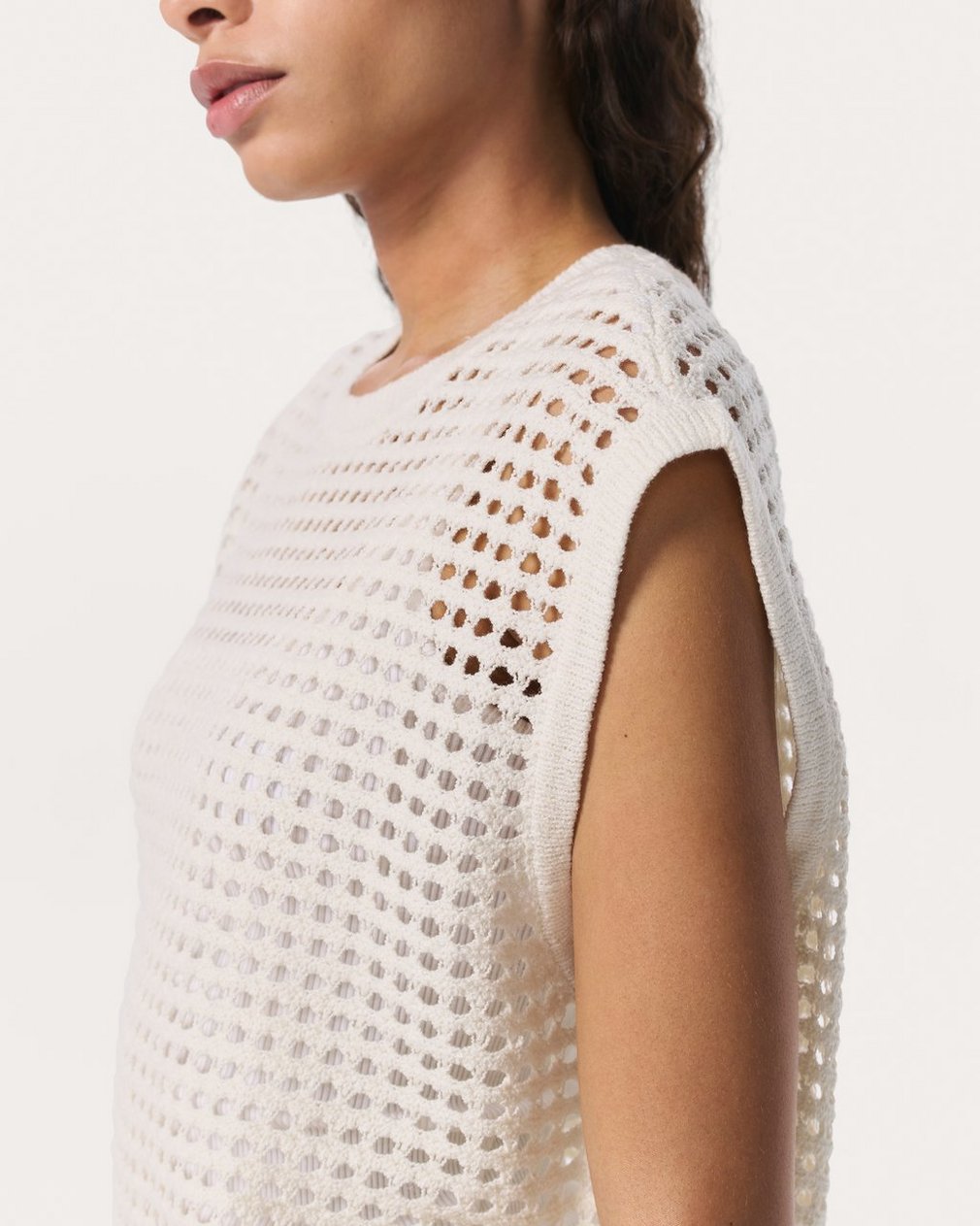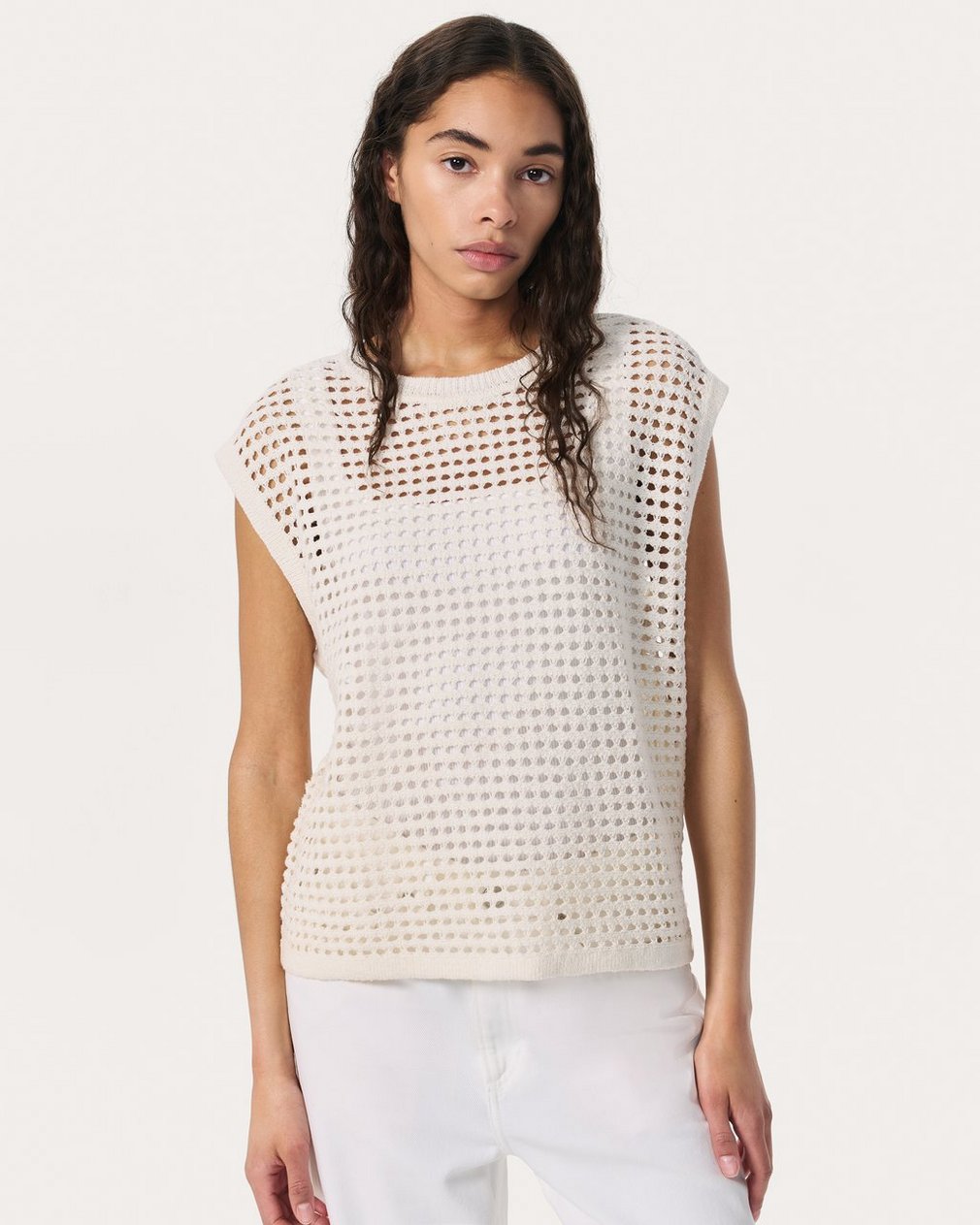 Light, breathable, and made to layer. Designed with warm-weather days in mind, this open-knit vest is crafted from a beautiful summer-weight yarn spun with cotton, silk, and linen. Throw the oversized top on over a long-sleeve shirt or tank when breezes pick up or temperatures start to dip. Take your typical size for its intended looser look, or size down for a closer fit.
