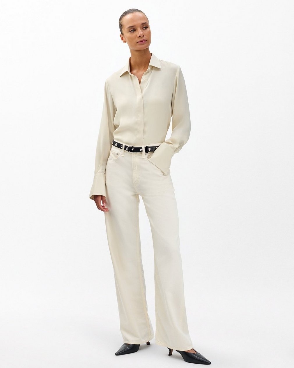 Featherweight Logan Wide Leg – Ecru: Mid-Rise Jean