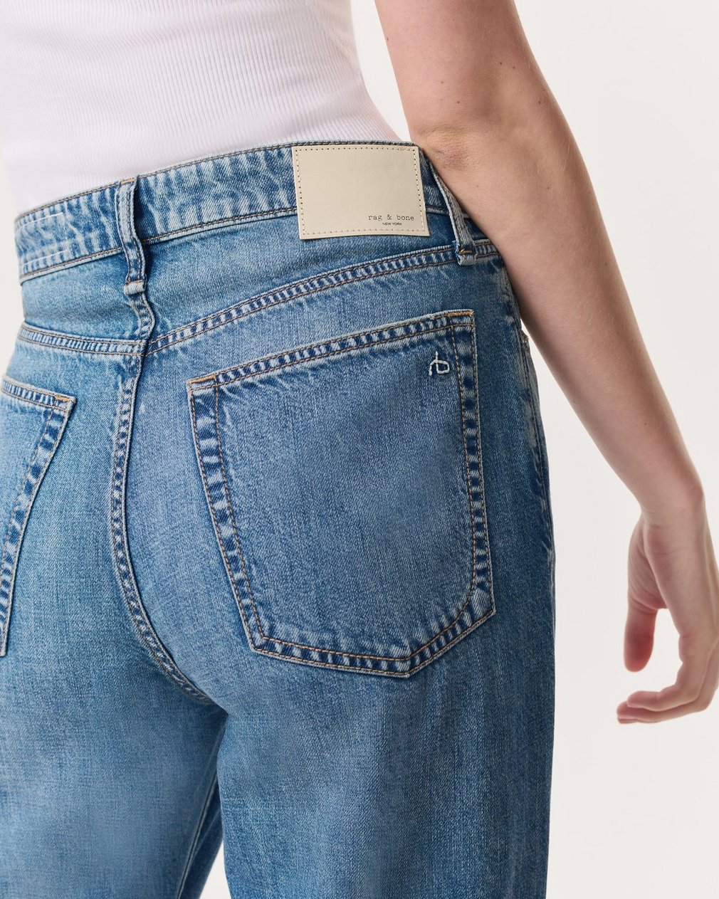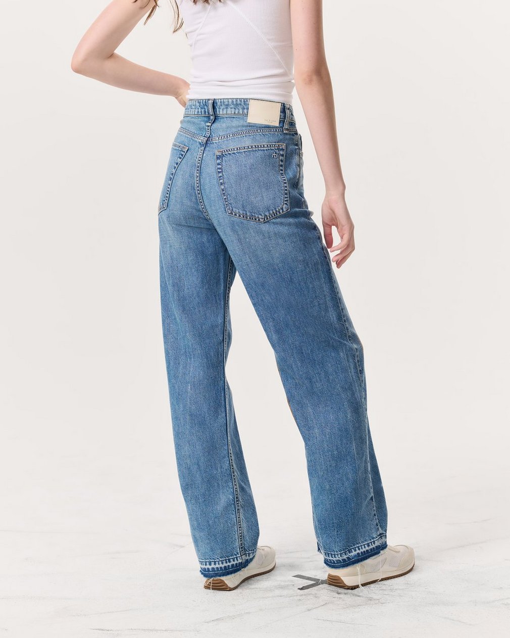 The Logan. Our laid-back, mid-rise jeans with a roomy fit through the hip and thigh down to a released hem. (Pro tip: Take your natural size and wear low on your waist for a relaxed look, or size down for a higher rise.) Crafted from our Featherweight denim that’s supremely soft and super light, with an easy drape. In Orian, a light indigo wash.
