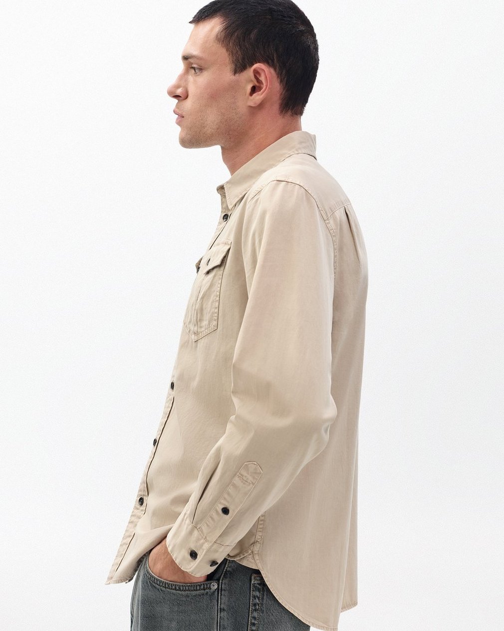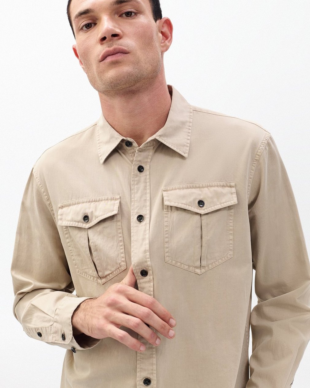 Finch is an easygoing button-up shirt cut for a relaxed fit at the perfect length to wear untucked. Or not. Crafted from a fluid cotton blend that undergoes a unique wash process to achieve its nuanced, worn-in look. Buttoned chest pockets add a military-inspired workwear edge.