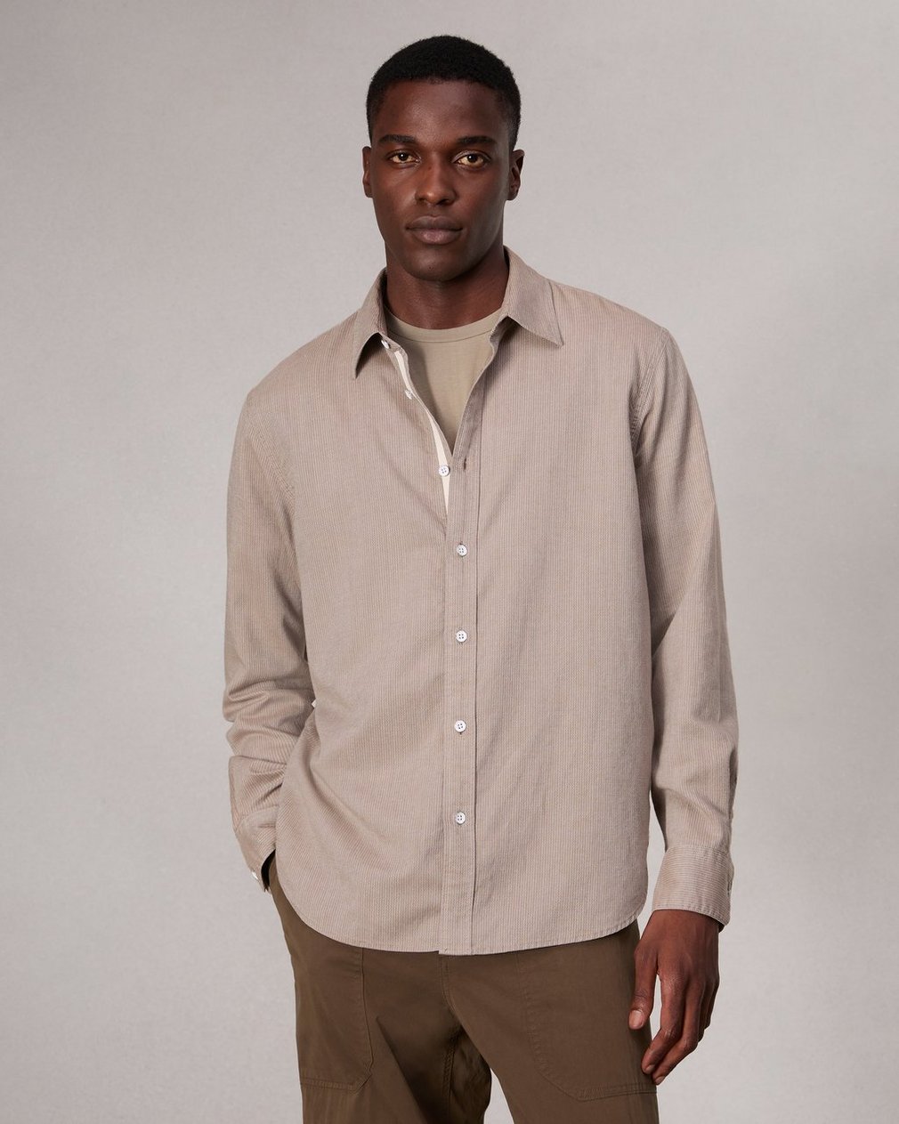 Finch Textured Striped Shirt – Khaki Stripe
