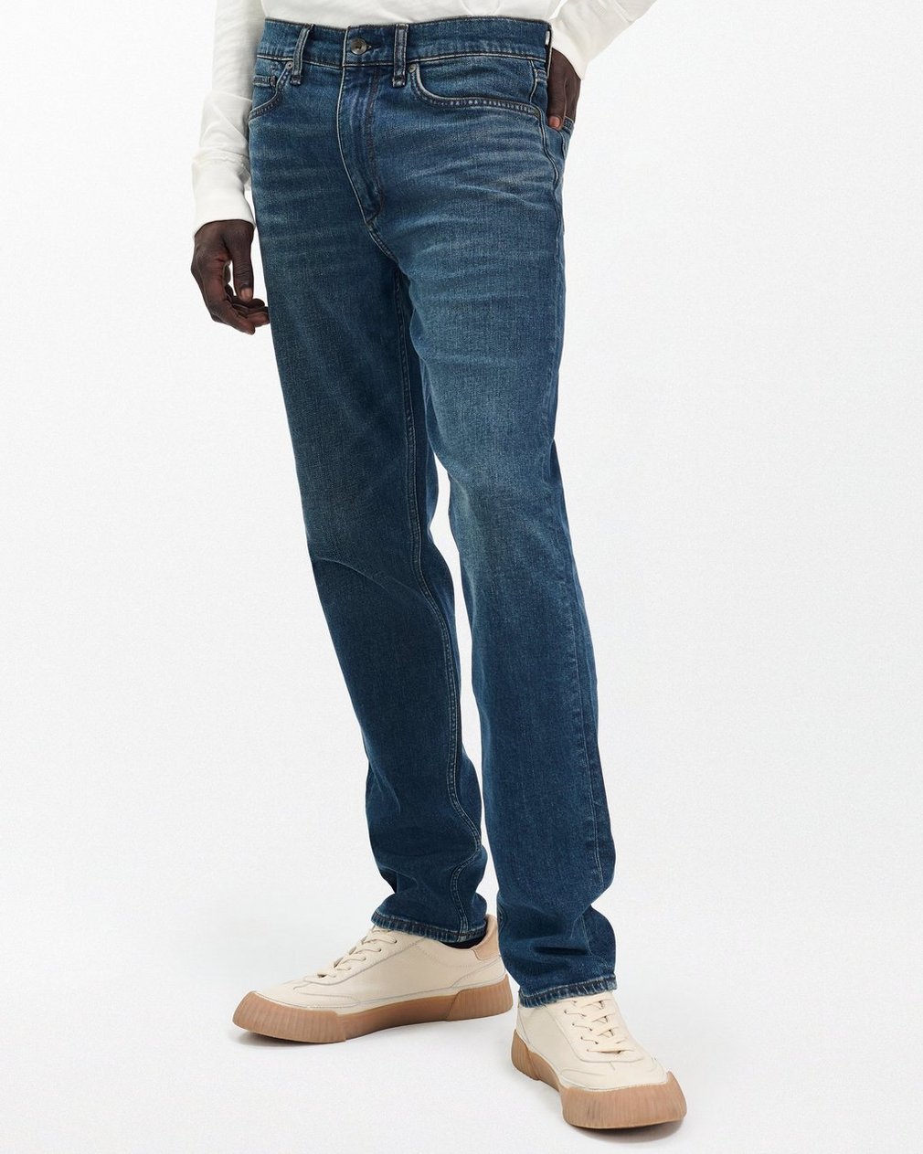 ? Mid-rise, slim fit, tailored through hip and thigh