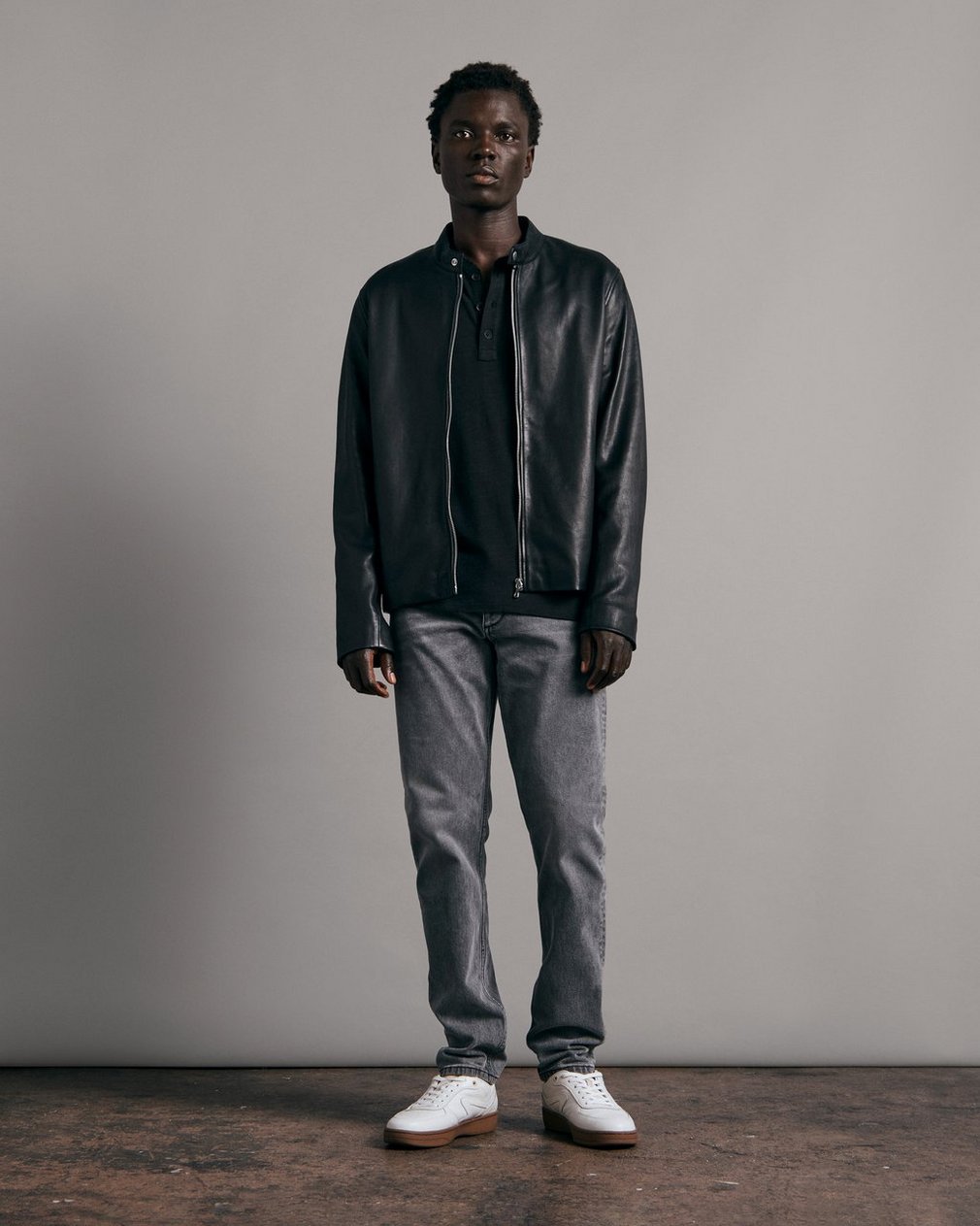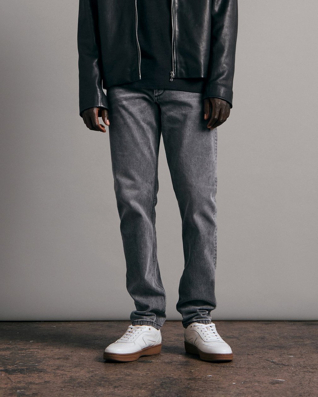 Our most popular fit. Mid rise, slim through the hip and thigh with a narrow leg opening. Can’t go wrong. Cut from comfort stretch denim, the Greyson wash is super versatile with slight 3D whiskering done by hand, and features classic rivets and our signature branded hardware based on the first ever rag & bone button.