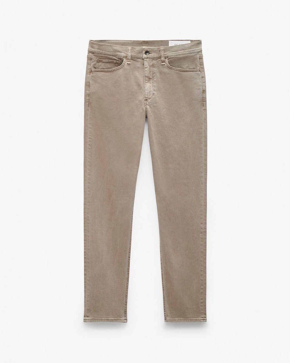 ? 91% cotton, 8% polyester, 1% elastane? Areo Stretch in Dark Taupe? Machine wash cold inside out, hang to dry,/br>? Color transfer may occur? Zip fly with a button closure? Clean finished hem? Five-pocket silhouette? Imported
