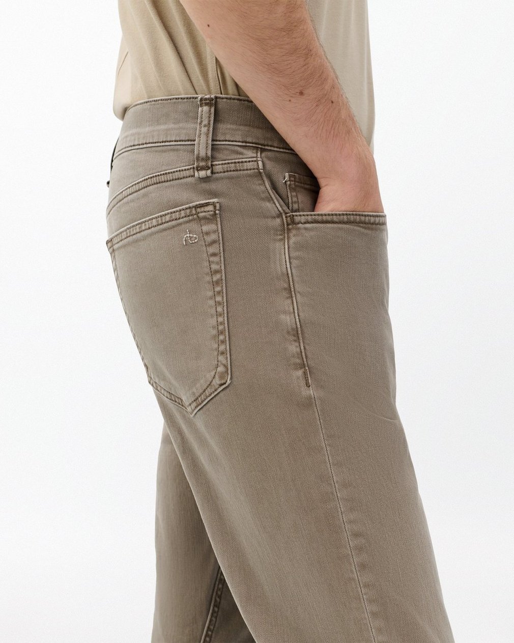 Fit 2. Our best-selling fit. Mid-rise with a slim fit and a tailored leg. Constructed in Aero Stretch – lightweight, modern comfort with superior stretch and retention. In Dark Taupe, a beige garment dye with a clean hem.