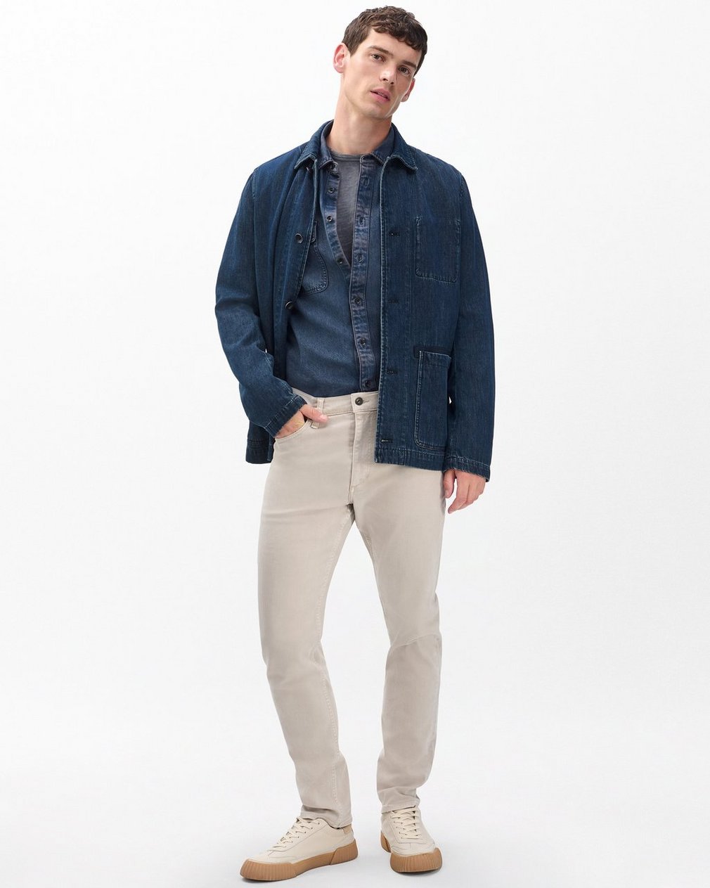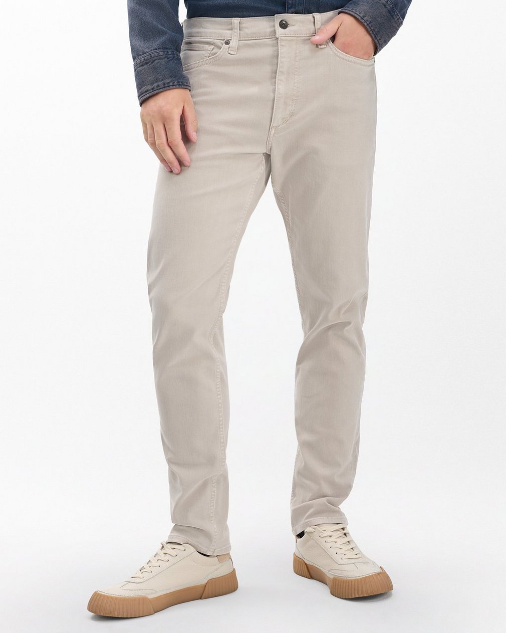 Fit 2. Our best-selling fit. Mid-rise with a slim fit and a tailored leg. Constructed in Aero Stretch lightweight, modern comfort with superior stretch and retention. In Sand, a beige garment dye with a clean hem.