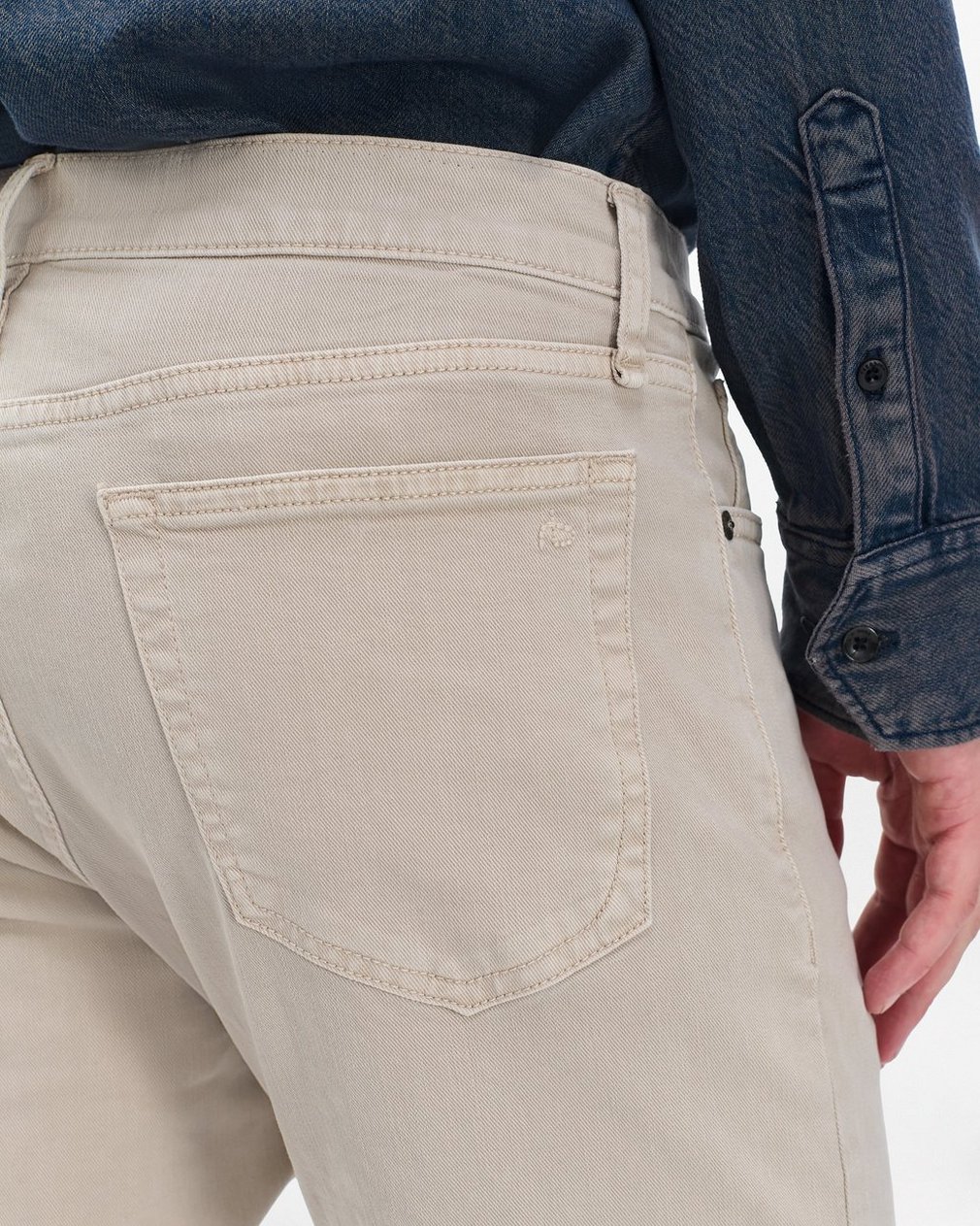 ? Aero Stretch Denim in Sand, a muted light brown