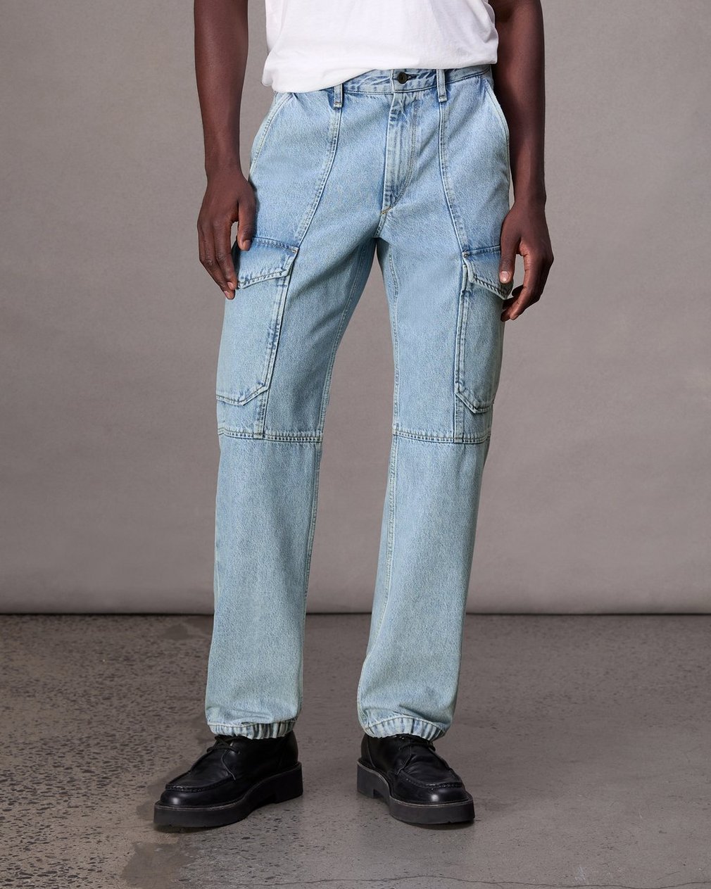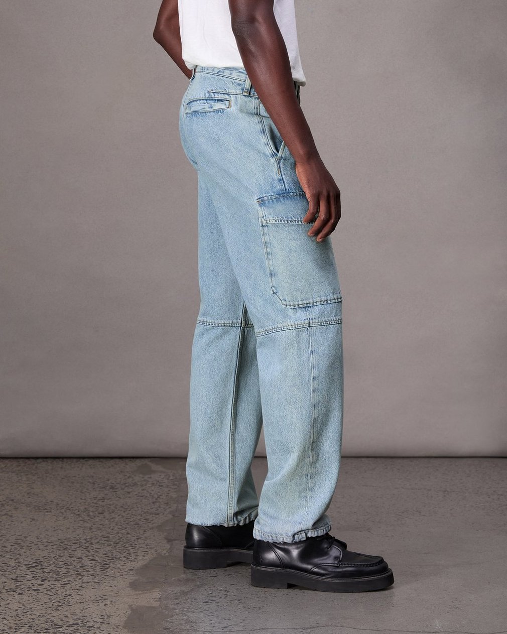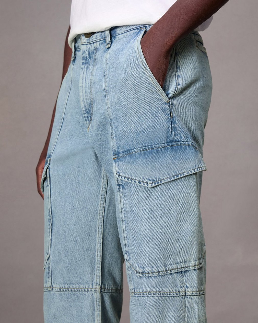 FIT 4. Mid-rise with a straight fit. Updated with cargo pockets, it’s crafted in Authentic Rigid denim that provides structure, but breaks in over time for a soft and comfortable feel. In Skylight, a light indigo wash with a clean hem.