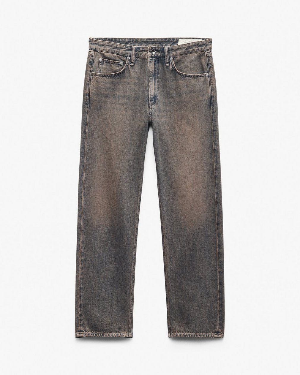 ? 100% cotton? Authentic Rigid Denim in Infuse Ochre Blue, a custom-developed medium indigo wash with an earthy overdye of red, brown, and black? Machine wash cold & tumble dry low? Color may bleed? Brushed gun metal button and rivets? Zip fly with button closure? Five-pocket silhouette ? Imported