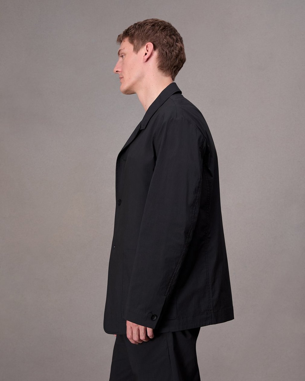 The Gramercy. An eased out approach to classic suiting. Detailed with a collar extension, this relaxed blazer is crafted in a cotton-nylon suiting that provides a refined look without the fussiness of traditional tailoring. Take your typical size for a looser look, or size down for a closer fit.