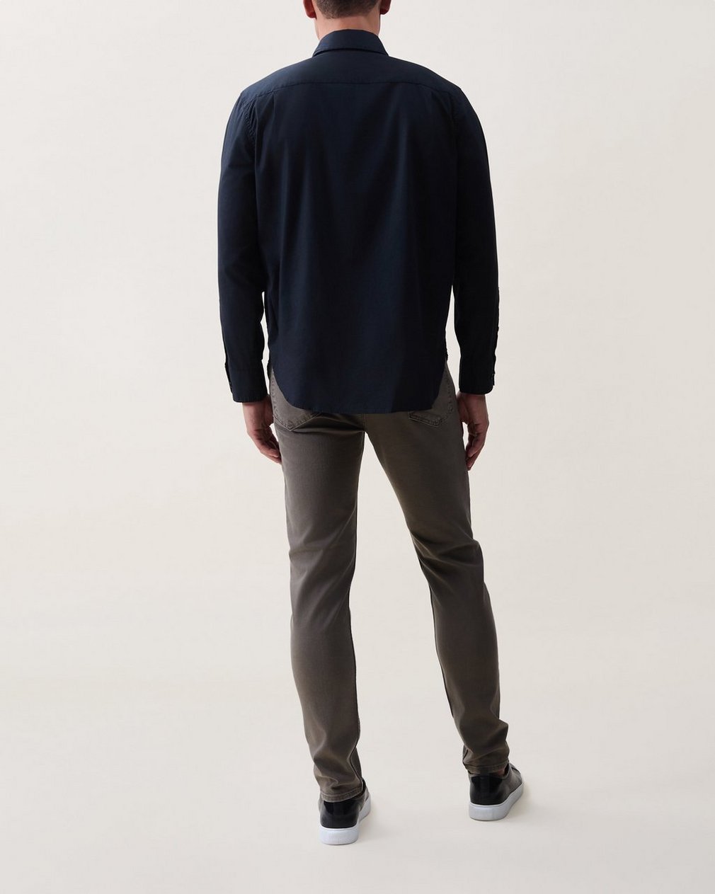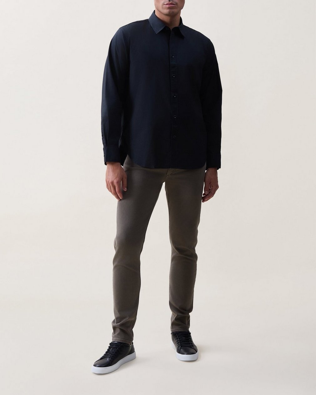 A nod to the Finch. Effortlessly relaxed, this button-up shirt is crafted from cotton poplin woven with stretch for added comfort. Designed to prevent creasing, it’s made for movement and travel.