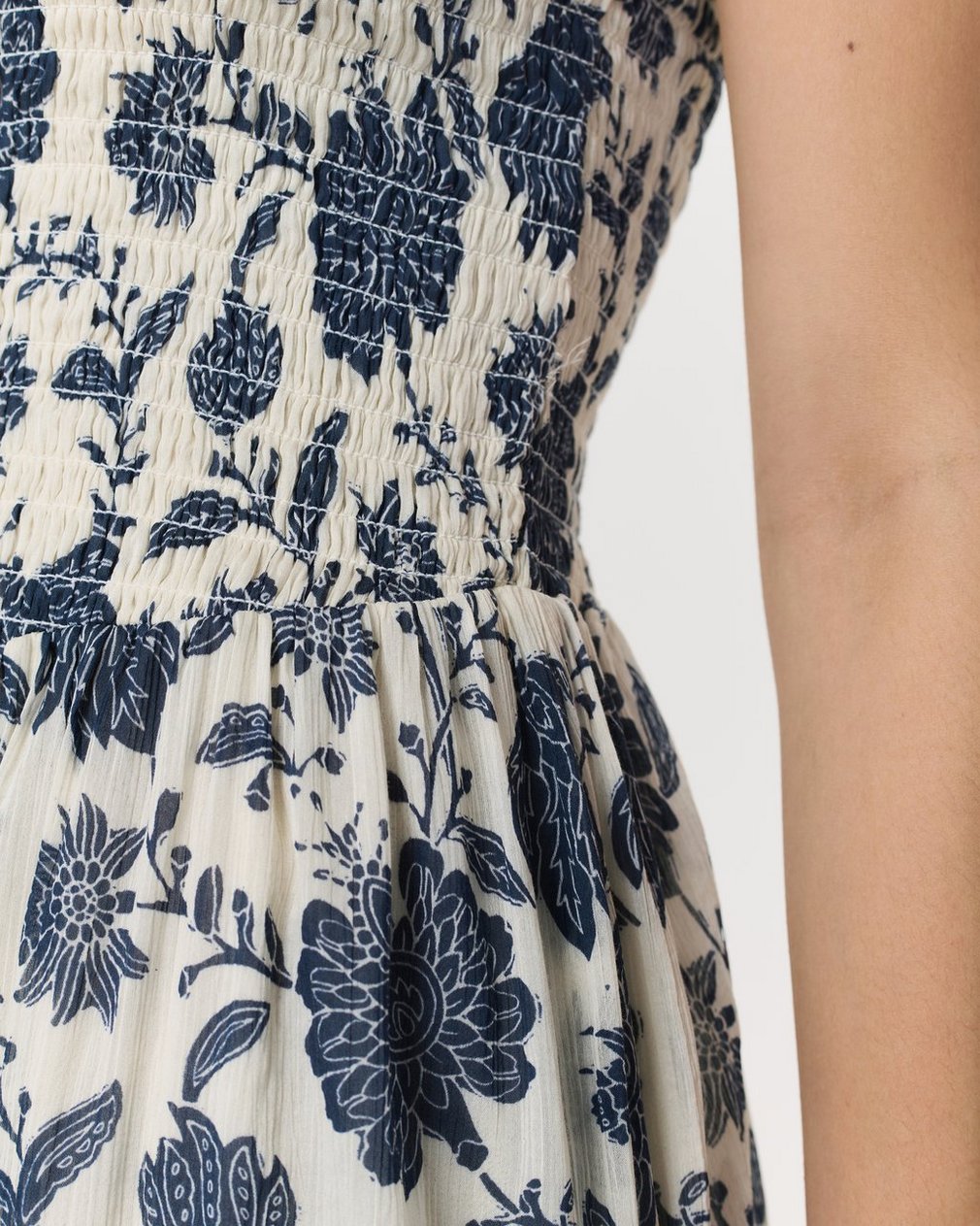 Looking for the perfect spring dress? Your search ends here. Crafted from a lightweight, luxurious cotton-silk fabric with a lively botanical print, this airy, ultra-feminine style will be your ideal companion for any of the season’s occasions (and those throughout the summer). It’s fully lined to ensure coverage and features slender, adjustable straps that can also detach if you want to wear it strapless.