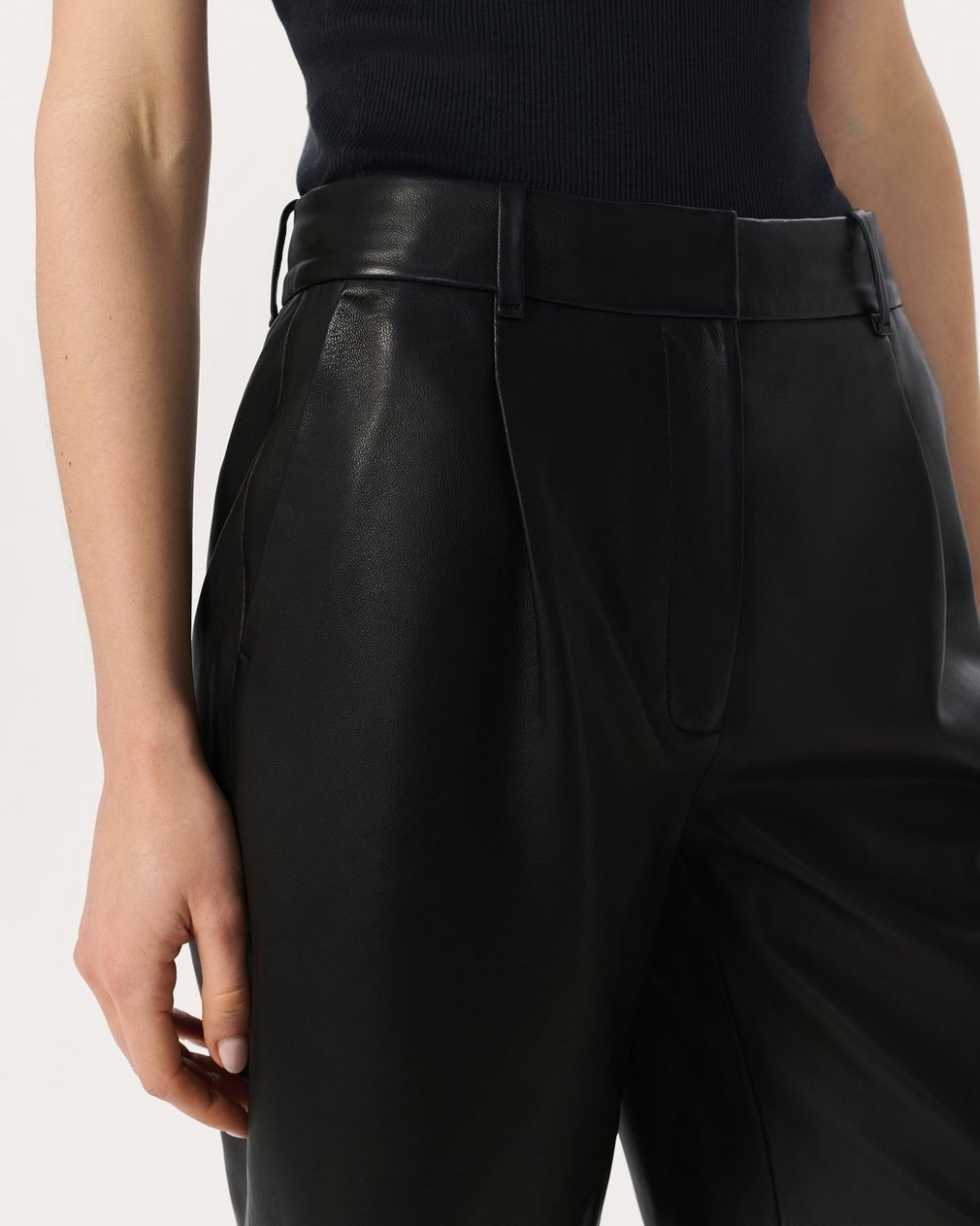 Elevated ease. Crafted from buttery lamb leather, these mid-rise shorts are cut for a relaxed fit with a longer 10.25″ inseam. They’re fully lined and feature the clean finish of a hidden hook-and-bar closure. Pair with the matching Slade Leather Vest and heels for a luxe summer look, or take them in a more casual direction with a short-sleeve top and sandals.