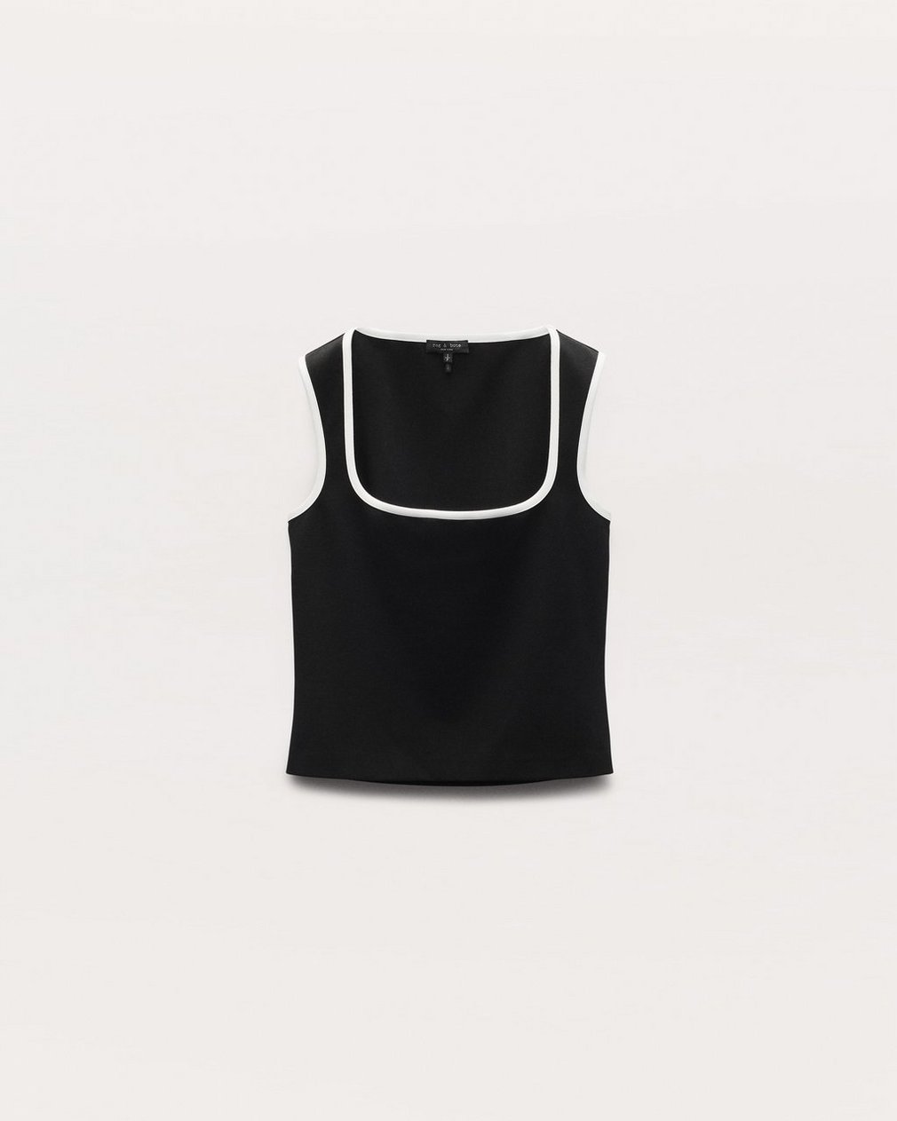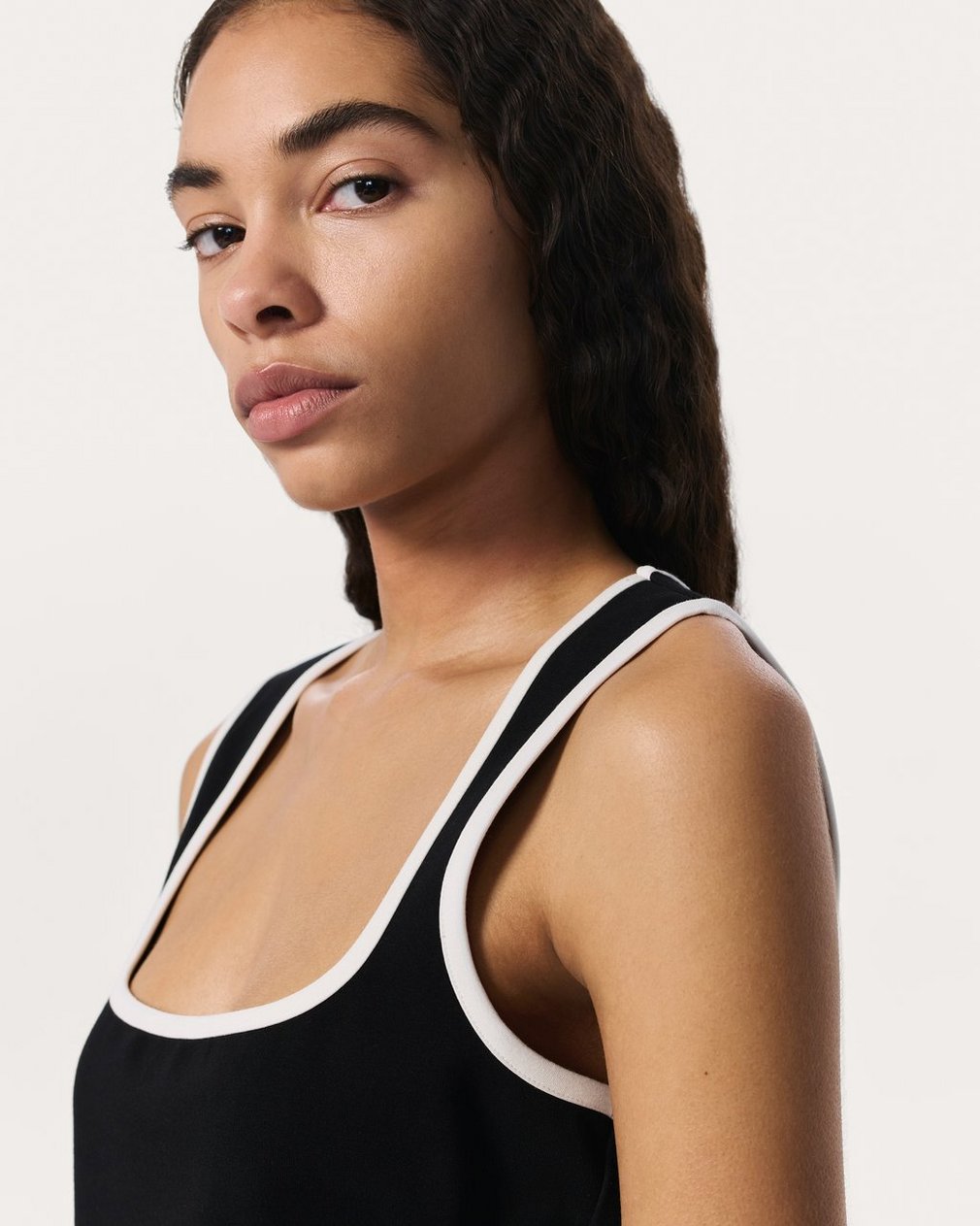 Game on. This tank is tailored from our bestselling ponte fabric, a stretch knit which balances structure and ease for a polished look on or off the court. The slim fit and curved contrast trims give it a sleek & sporty feel. An added bonus? The sleeveless top is machine washable, making it a mainstay in your warm-weather rotation.