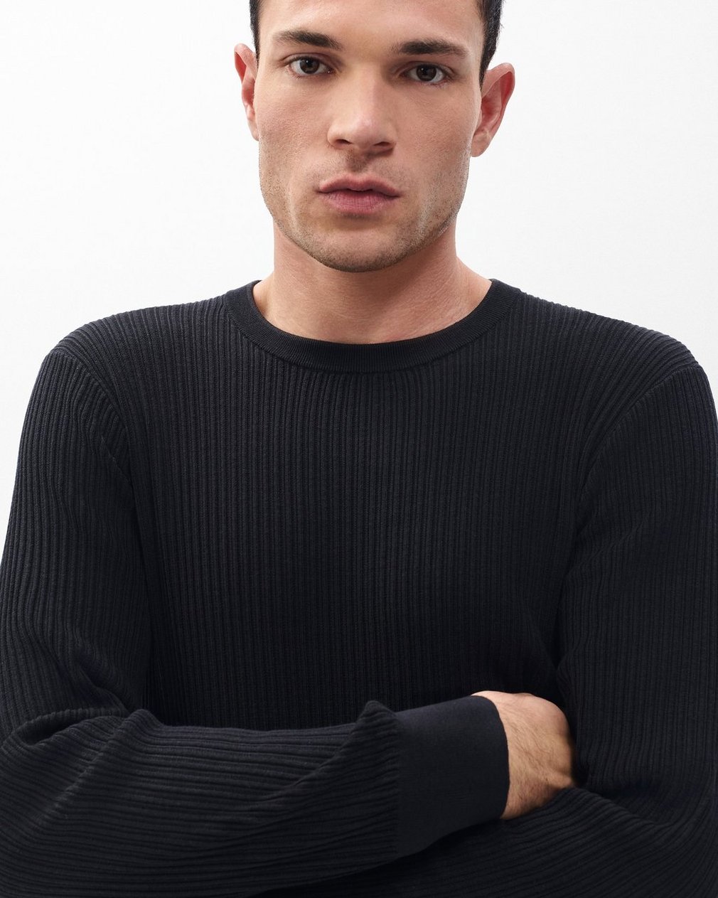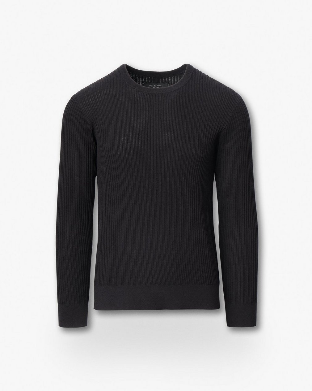 Everyday, elevated. This classic crewneck sweater is knit from a soft blend of fine silk and cotton. Its luxurious ribbed texture pairs just as well with suiting styles as your favorite denim. The epitome of effortless elegance.